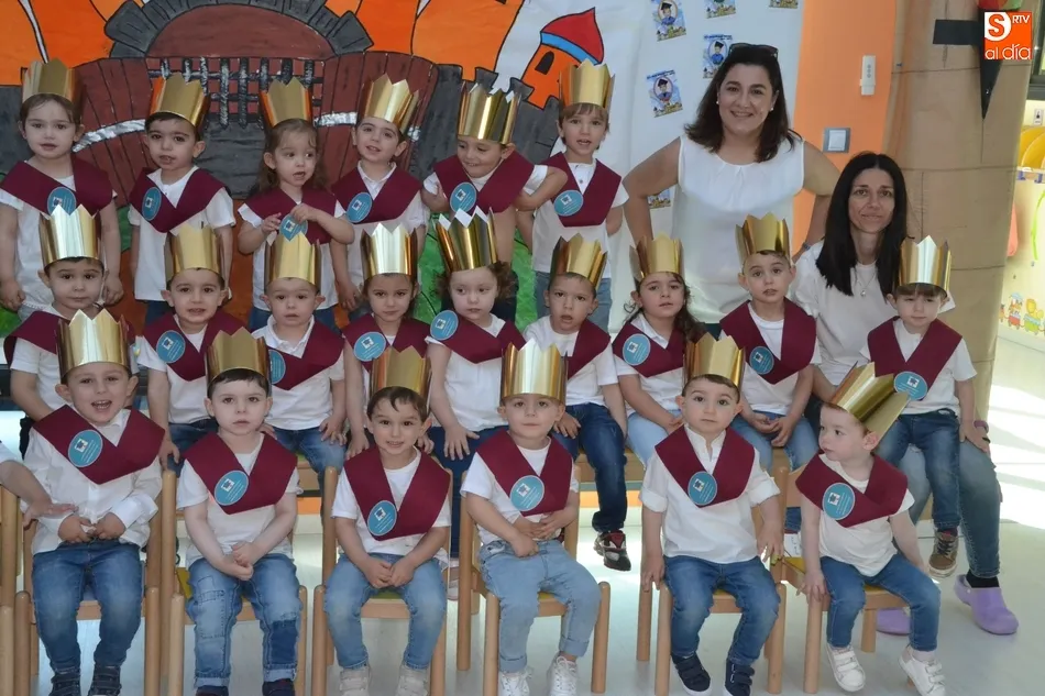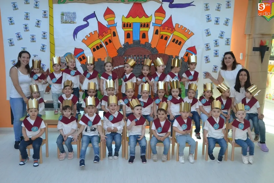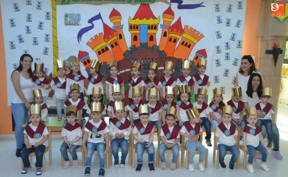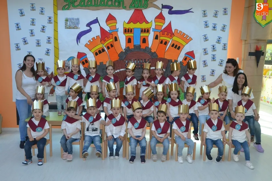 De este modo, a los alumnos no se les colocó ?junto a las bandas- el clásico birrete, sino una corona, siendo investidos caballeros y princesas, según apuntaban las responsables de la Escuela Infantil. En total, este año se gradúan 36 niños y niñas (3 más que el curso pasado), nacidos todos ellos en el año 2015.