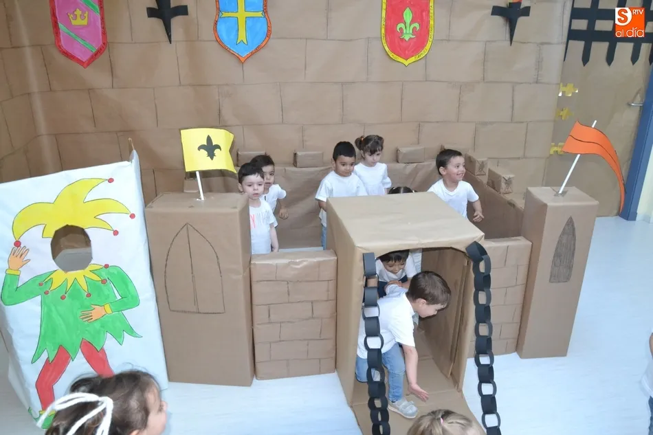En esta ocasión, la Escuela Infantil decidió darle un toque diferente a esta ceremonia, ambientándola en la Edad Media, lo que implicó incluso montar un castillo en la zona de entrada a la Escuela, donde también lucía un gran dibujo de un castillo y otro de un dragón.