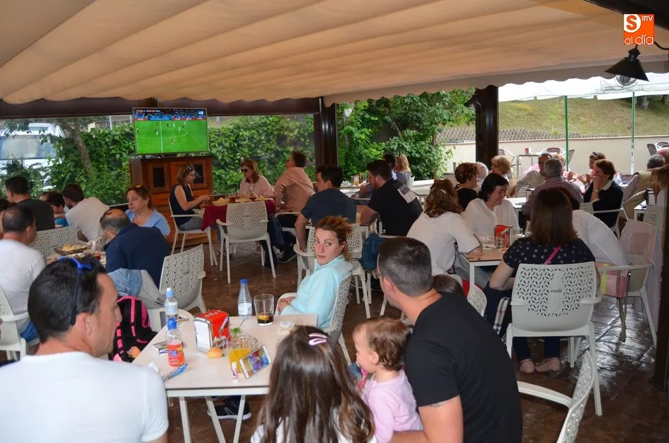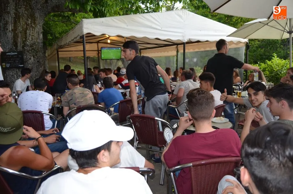 Tras un partido que comenzó con Portugal ganando de penalti a una España titubeante y con la remontada rápida de la Selección Española, los aficionados que parecían un poco dispersos en los bares de la localidad, pasando un rato entre charlas y cañas, se han acabado pegando a los televisores para ver los últimos minutos que han finalizado con el empate del gran partido de nivel que se ha jugado esta tarde entre las dos selecciones vecinas.