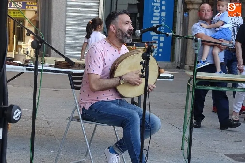 Componente de un grupo llamado ?Canto Llano? realiza conciertos en solitario por las diferentes ferias agroalimentarias de la comarca para dar a conocer a los visitantes la denominada música de raíz. Alfonso Diez cantó varias canciones con diferentes instrumentos, aunque según reconocía el cantante su especialidad era la pandereta.