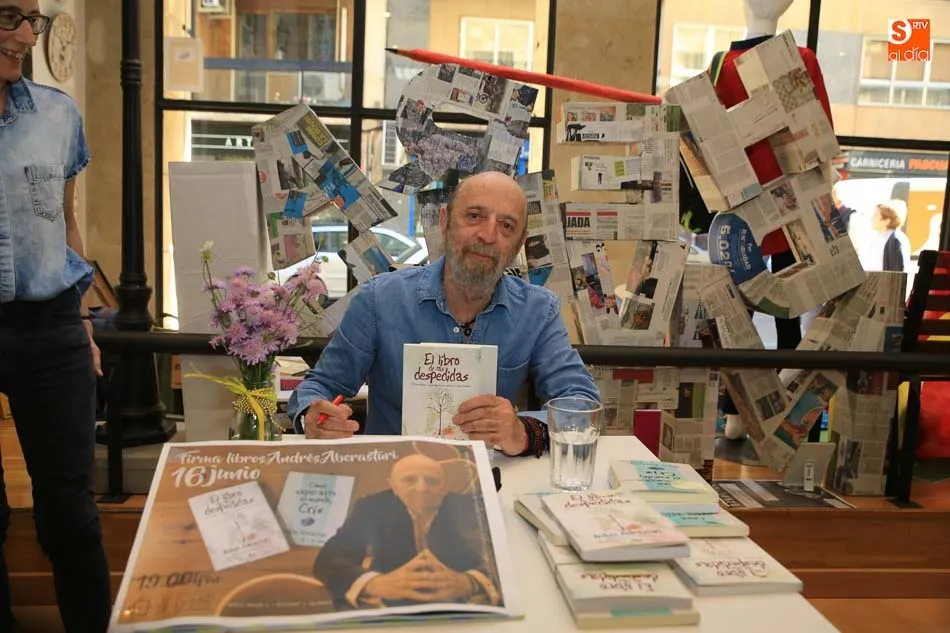 La librería Yuste acogió hoy a un invitado muy especial. El escrito y periodista español, Andrés Aberasturi, ha desembarcado en Salamanca para firmar ejemplares de ?El libro de las Despedidas?, una edición revisada de su última obra poética y completada con Las soledades de Carancanfunfa, que constituye una ?biografía sentimental? del veterano periodista y escritor.