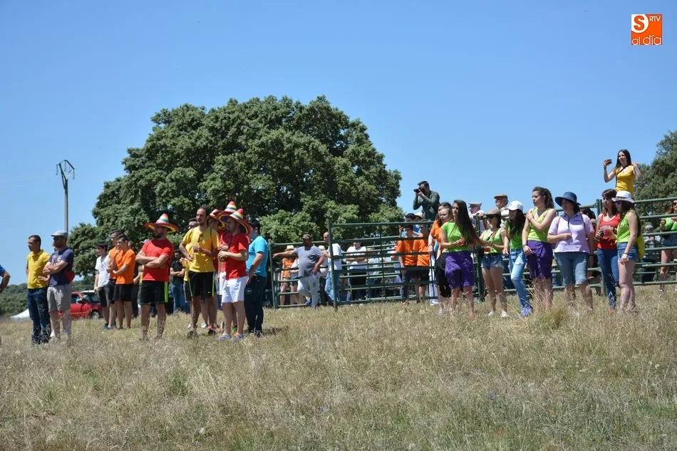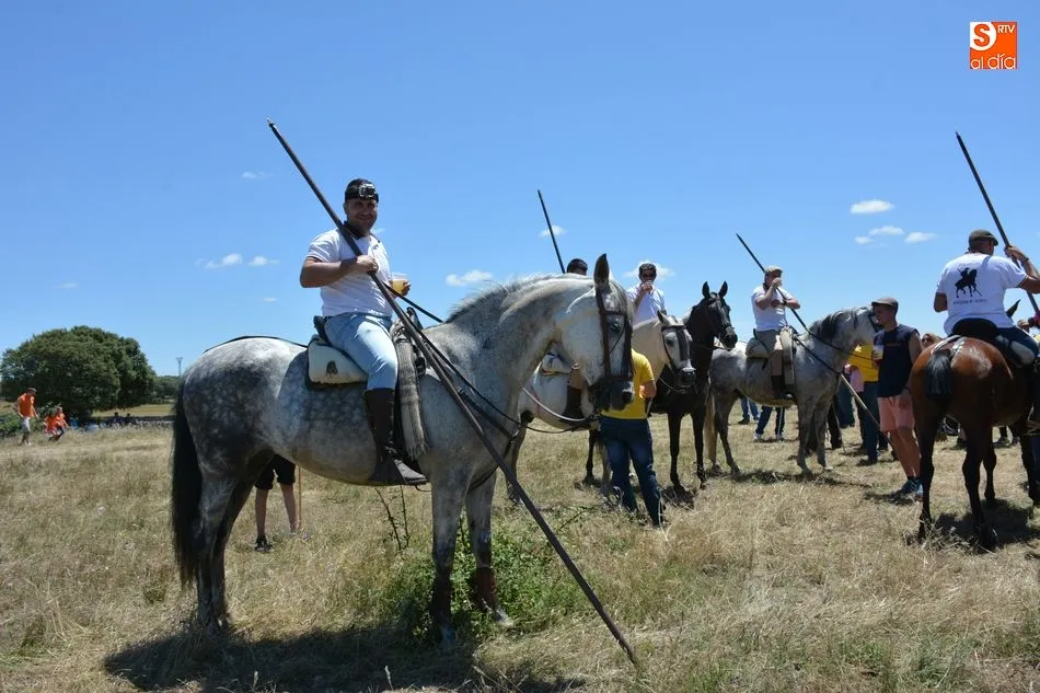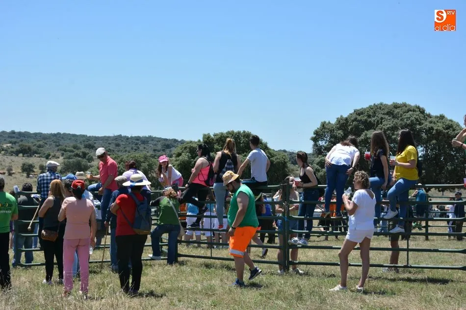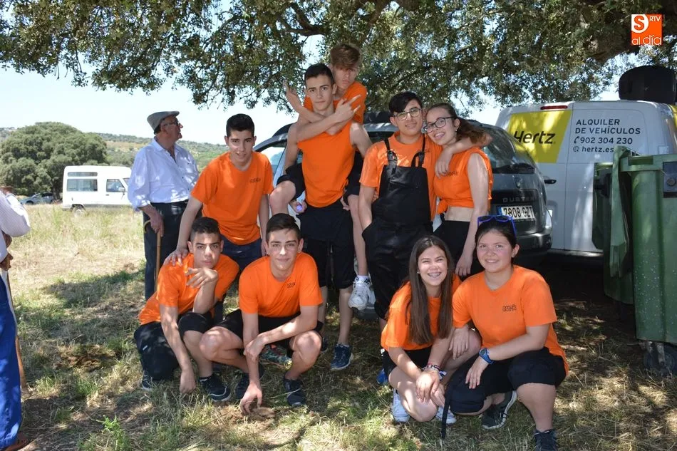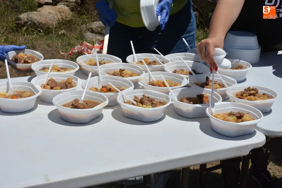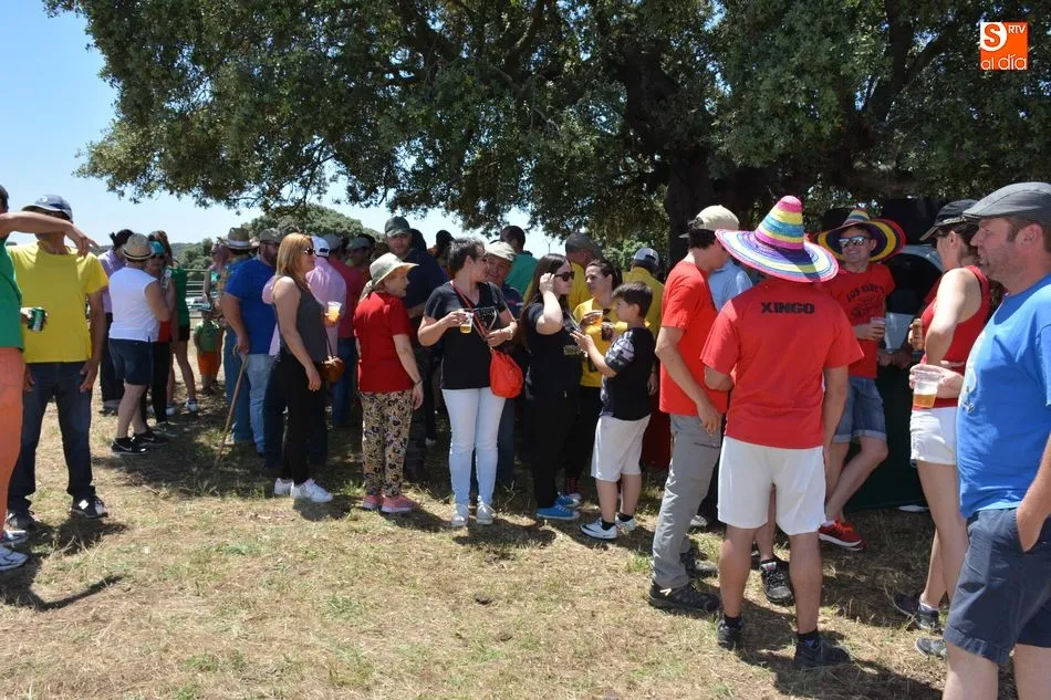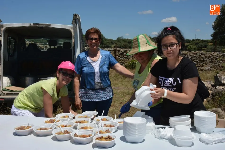 Una vez encerrada la última de las vaquillas, llegó la hora de la comida, un guiso de carne de jabalí con patatas, ofrecido por el Ayuntamiento de la localidad, y cocinado y repartido por un grupo de vecinos voluntarios. A la sombra de los árboles del entorno se situaron grupos de peñas y de amigos de todas las edades para disfrutar de esta jornada campestre, previa a las fiestas de San Juan 2018.