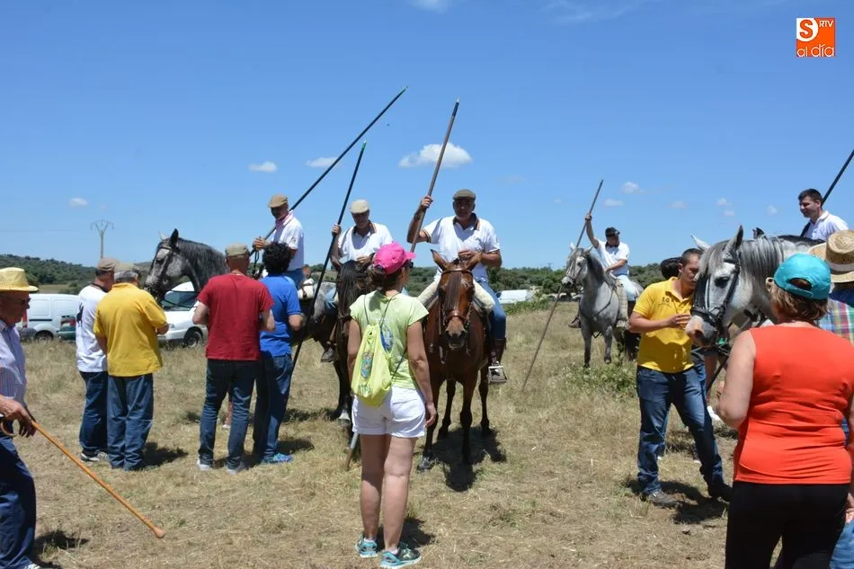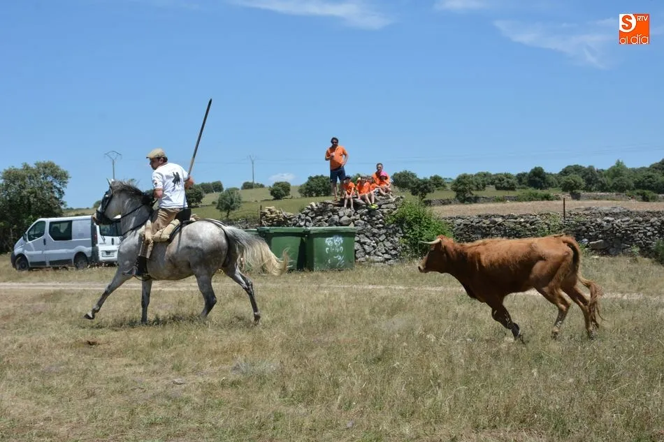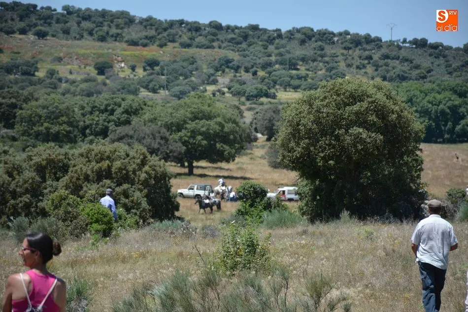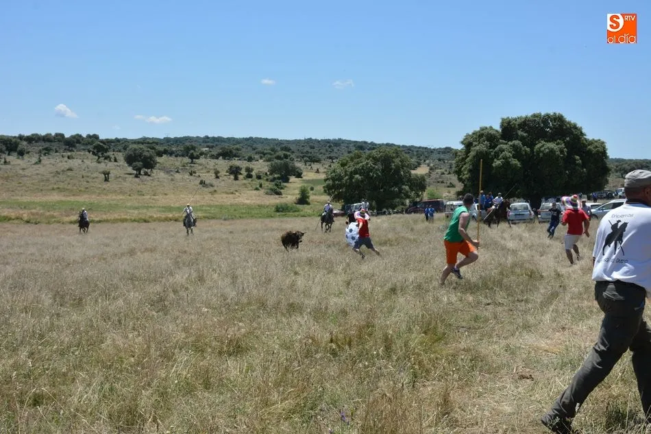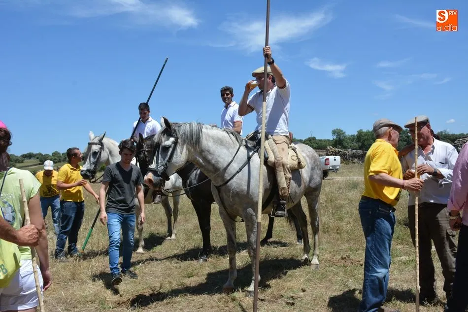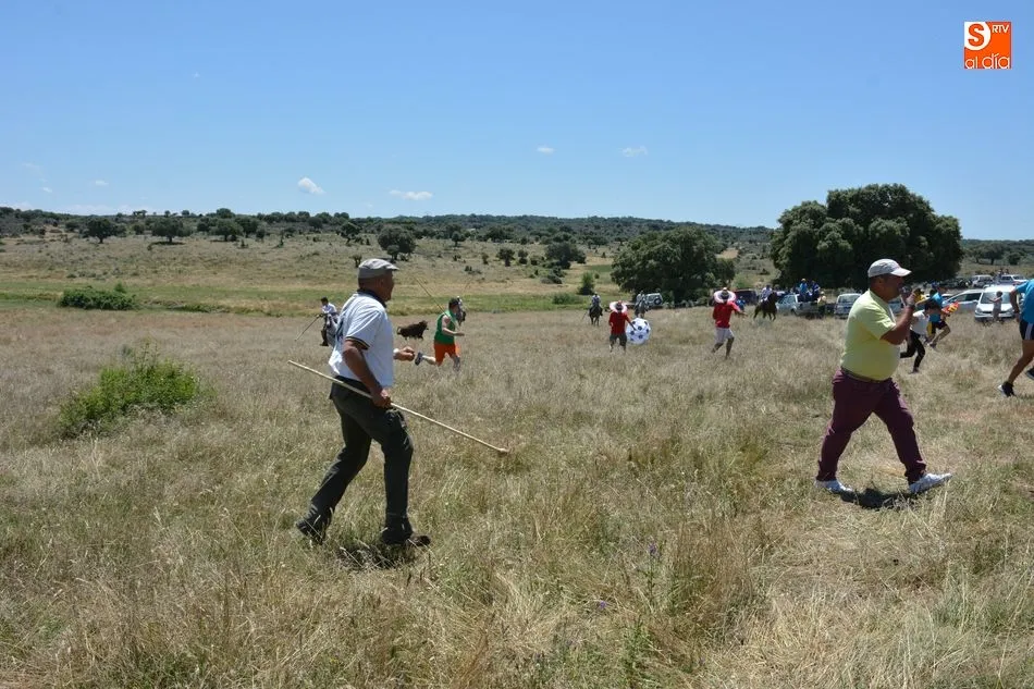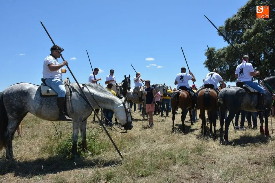 Una vez encerrada la última de las vaquillas, llegó la hora de la comida, un guiso de carne de jabalí con patatas, ofrecido por el Ayuntamiento de la localidad, y cocinado y repartido por un grupo de vecinos voluntarios. A la sombra de los árboles del entorno se situaron grupos de peñas y de amigos de todas las edades para disfrutar de esta jornada campestre, previa a las fiestas de San Juan 2018.
