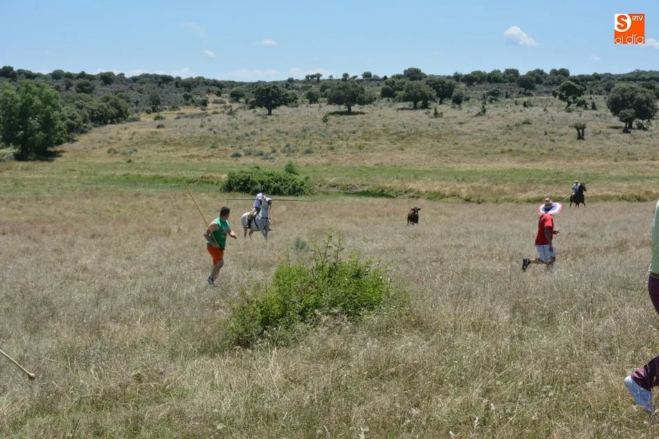 Los hinojoseros de todas las edades y vecinos de los pueblos del entorno que se han congregado este mediodía en la dehesa municipal, el monte, pudieron disfrutar participando o contemplando la suelta de dos vaquillas por el campo en un encierro dirigido y controlado por expertos jinetes de Hinojosa. La primera de las vaquillas hizo el recorrido en pocos minutos. Su compañera dio más juego al resistirse a ser conducida al lugar de encierro. Los caballistas y otros voluntarios consiguieron finalmente cortar la marcha de la vaca, cercándola con varios vehículos.