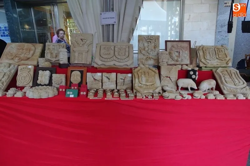 Con más de treinta años de experiencia el escultor Tomás González Maillo ha ofrecido a los visitantes de la feria de San Antonio una demostración didáctica de talla de piedra de Villamayor.