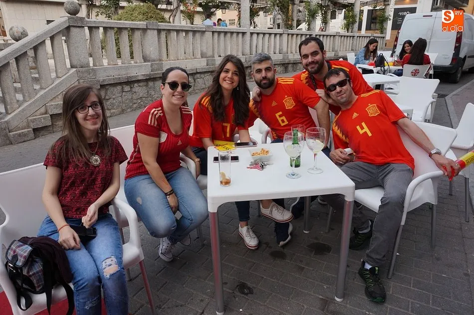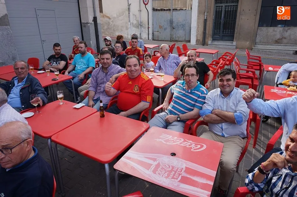 ara la actuación española en tierras rusas. Los aficionados al fútbol de Guijuelo no quisieron perderse la cita y una vez más, los bares y terrazas se llenaron de aficionados que corearon los goles del combinado de Hierro y sufrieron ante el triplete marcado por Cristiano Ronaldo.