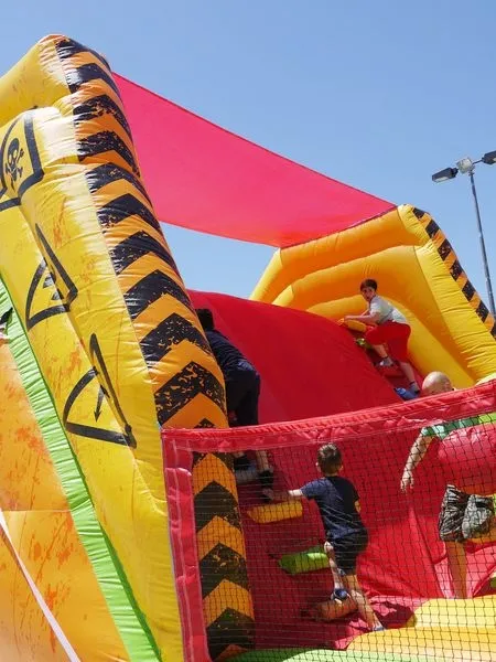 Esta fiesta de fin de curso cuenta también con una rampa seca, una superficie hinchable con tobogán donde niños y mayores pueden lanzarse en flotadores, pero sin mojarse. Y para los más peques (niños de 0 a 5 años) un hinchable con numerosos juegos.