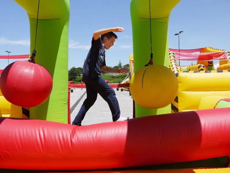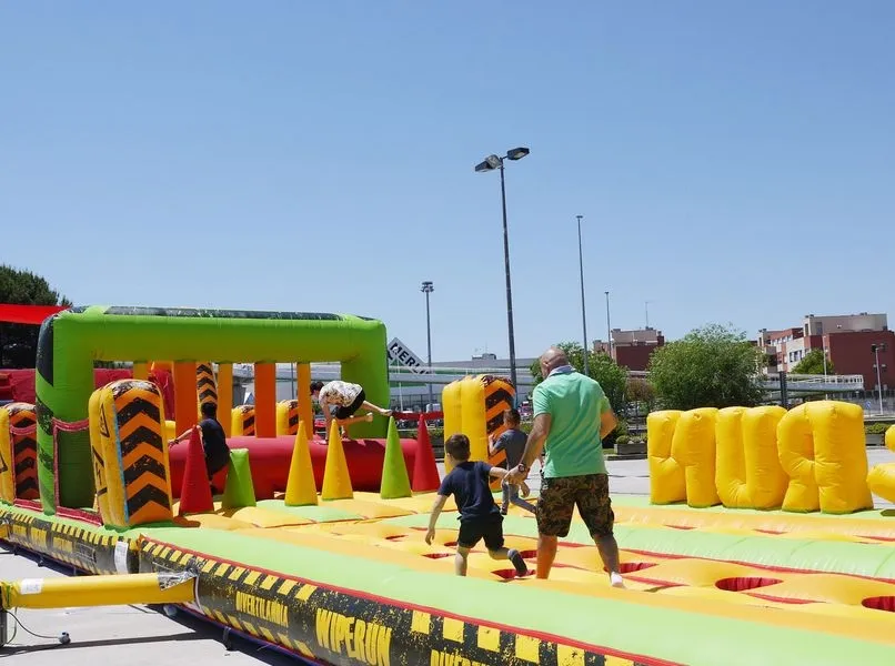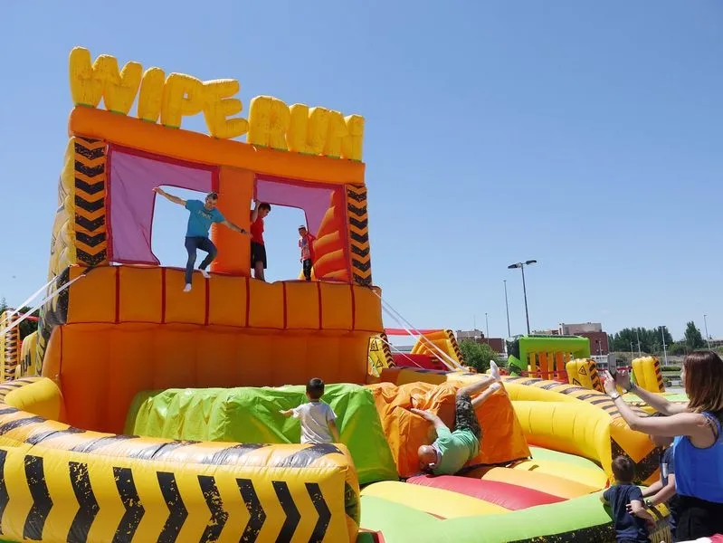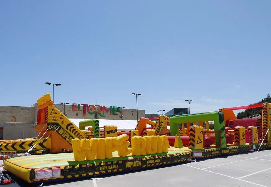 El parking exterior del Centro Comercial El Tormes se ha convertido en un ?WipeRun?, un hinchable gigante con once pruebas de habilidad que finalizan con una caída libre a una zona de colchonetas, toda una pista americana para que disfrute todo aquél que lo desee (a partir de 6 años de edad).