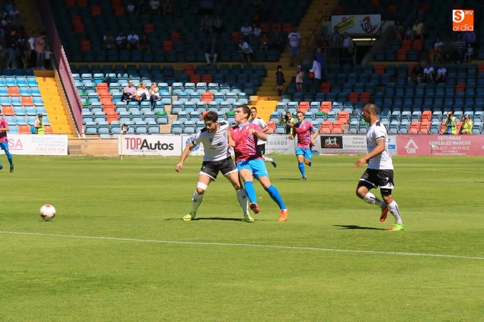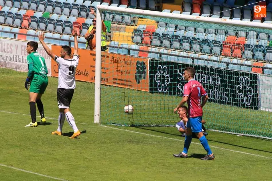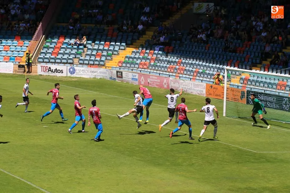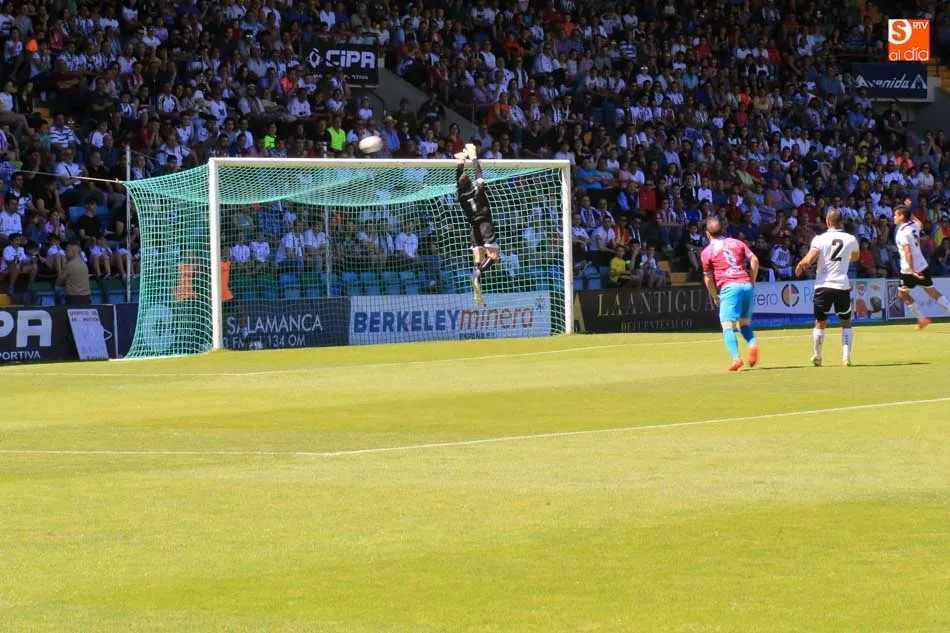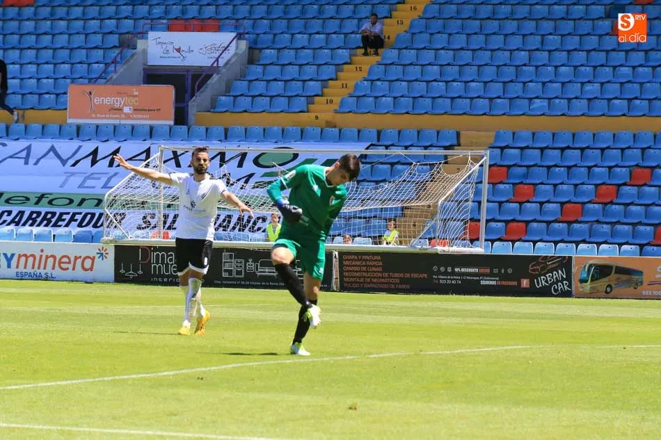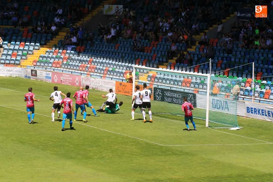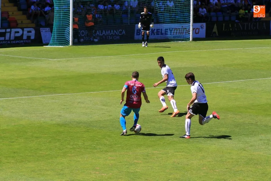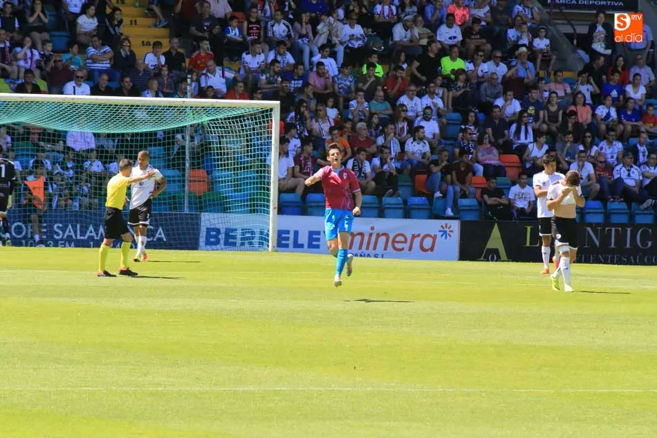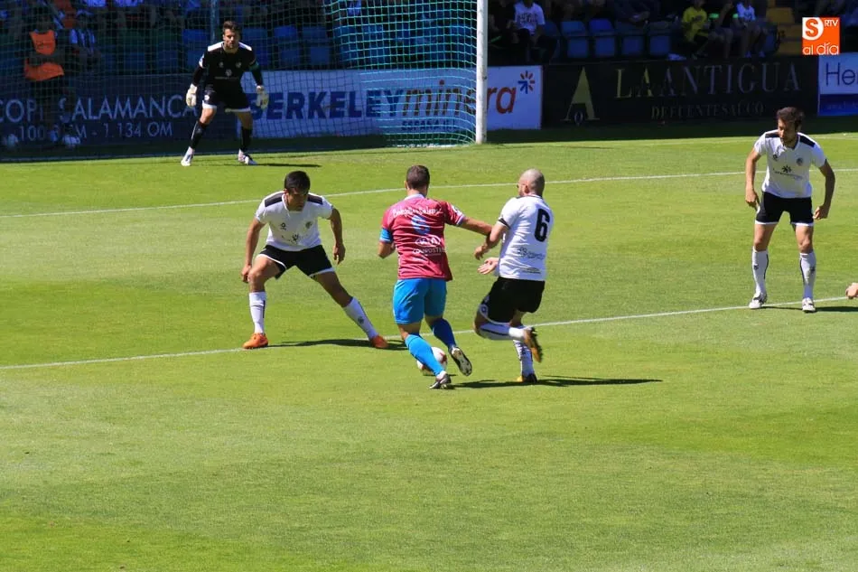 Tuvo el empate Juanan de cabeza en una falta botada por Amaro, pero al descanso se llegaba con el Salmantino UDS por debajo en el marcador. Ya en la segunda mitad, primero la tuvo Murci en un remate de cabeza y de nuevo el leonés se plantaba solo en el 54, pero su remate se estrellaba en el cuerpo de Lucas. Era la antesala del gol que llegaba en el 57 tras una buena jugada que termina Ortiz tras centro de Amaro (1-1).