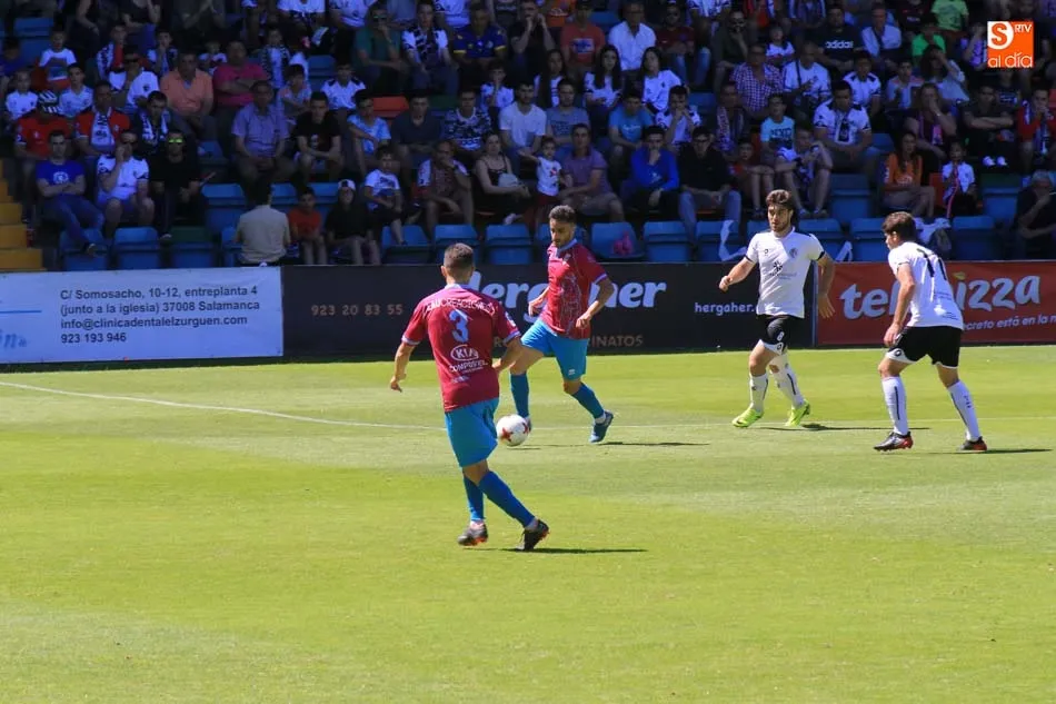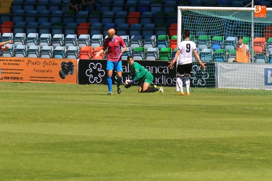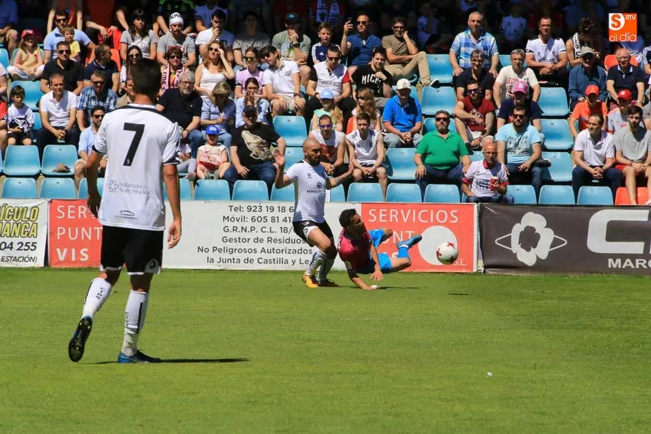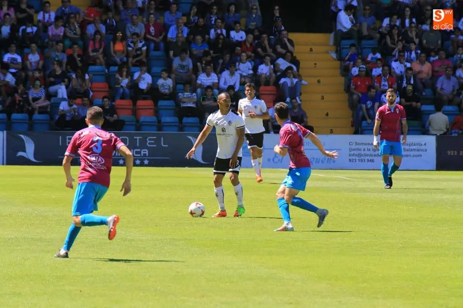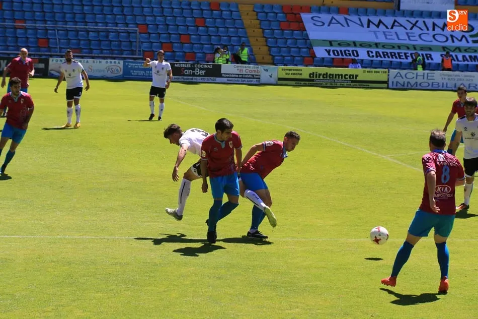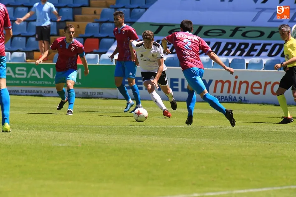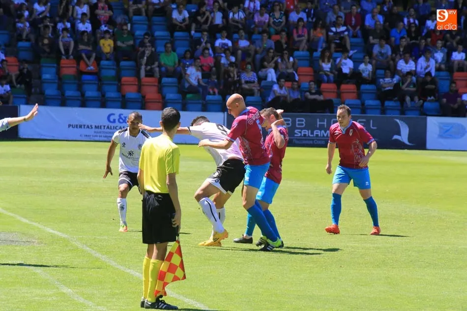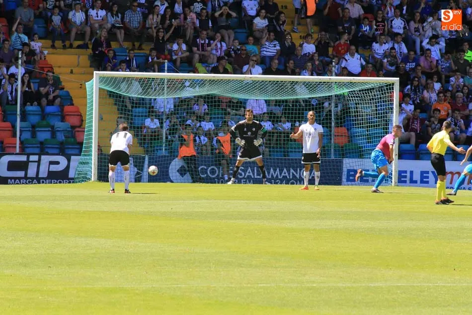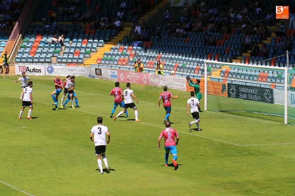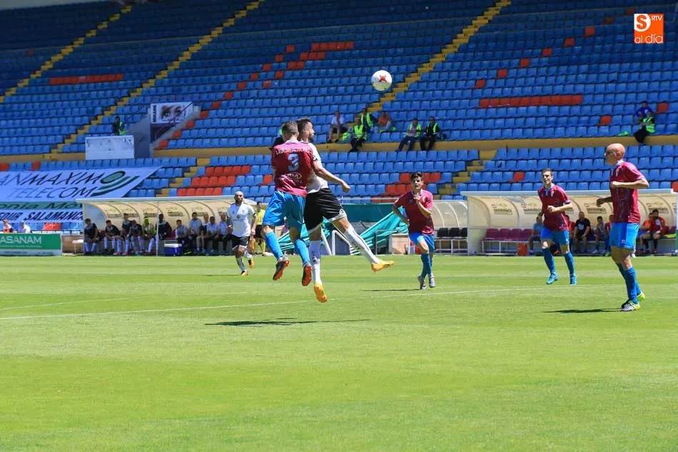 Tuvo el empate Juanan de cabeza en una falta botada por Amaro, pero al descanso se llegaba con el Salmantino UDS por debajo en el marcador. Ya en la segunda mitad, primero la tuvo Murci en un remate de cabeza y de nuevo el leonés se plantaba solo en el 54, pero su remate se estrellaba en el cuerpo de Lucas. Era la antesala del gol que llegaba en el 57 tras una buena jugada que termina Ortiz tras centro de Amaro (1-1).