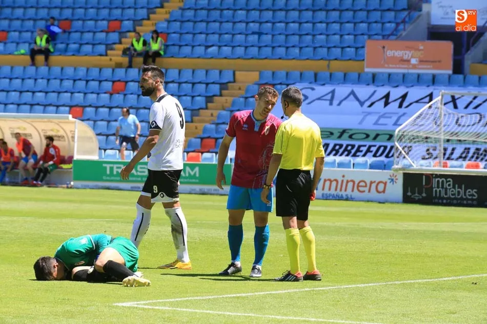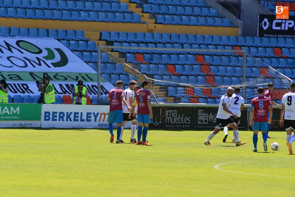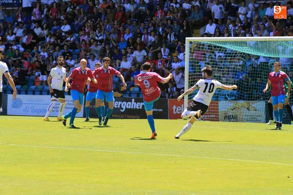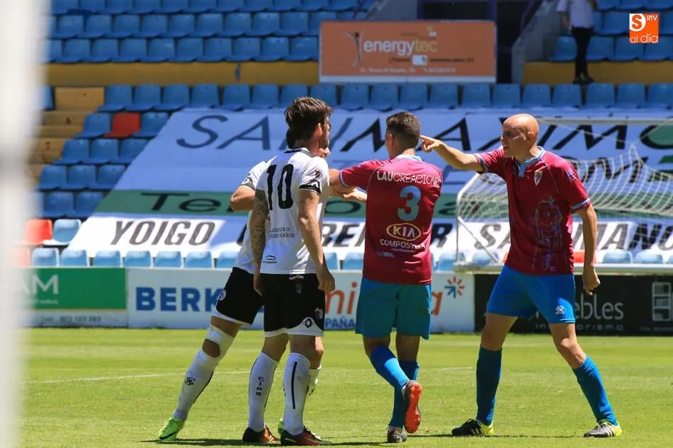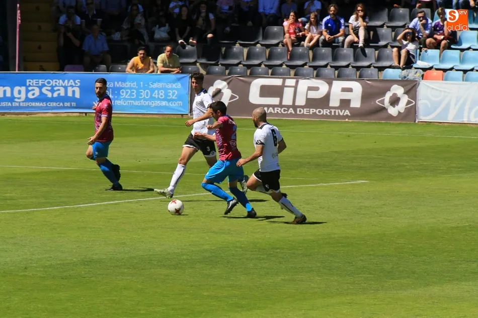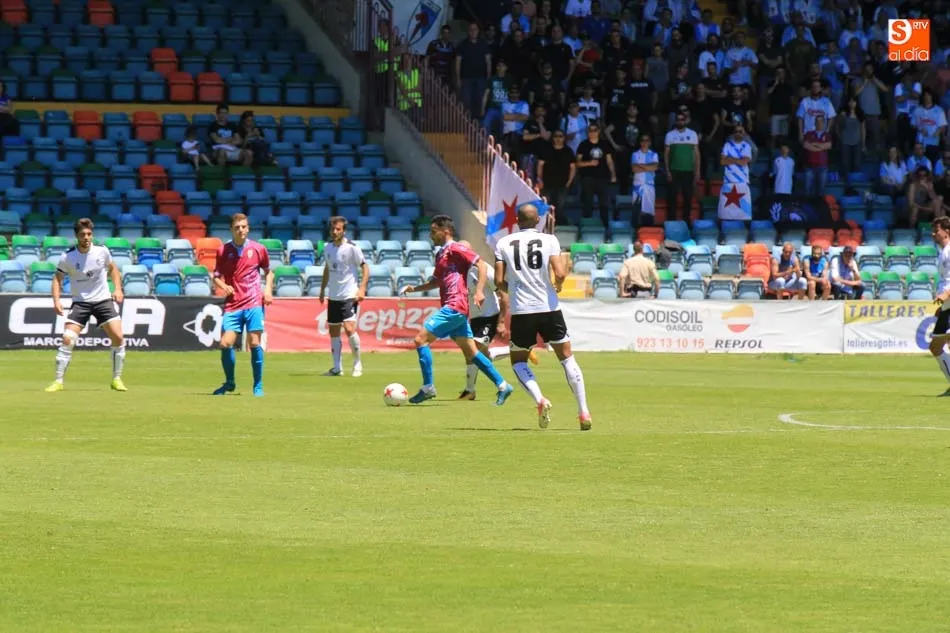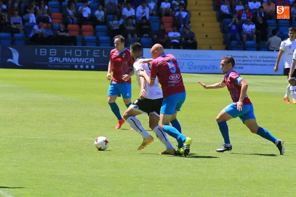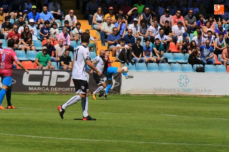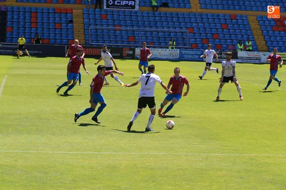 Tuvo el empate Juanan de cabeza en una falta botada por Amaro, pero al descanso se llegaba con el Salmantino UDS por debajo en el marcador. Ya en la segunda mitad, primero la tuvo Murci en un remate de cabeza y de nuevo el leonés se plantaba solo en el 54, pero su remate se estrellaba en el cuerpo de Lucas. Era la antesala del gol que llegaba en el 57 tras una buena jugada que termina Ortiz tras centro de Amaro (1-1).