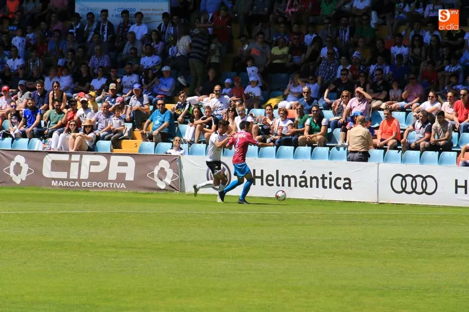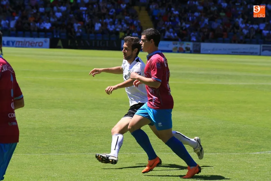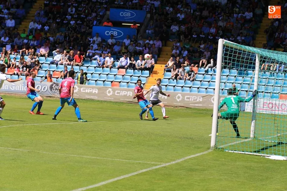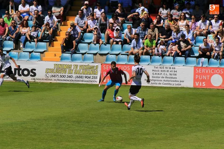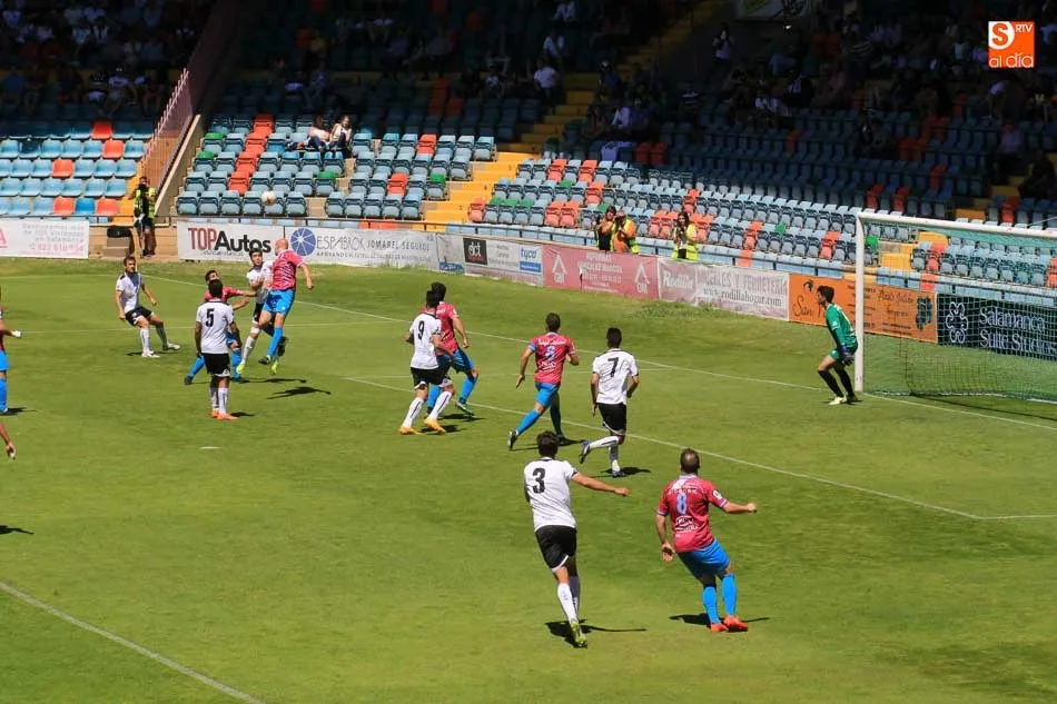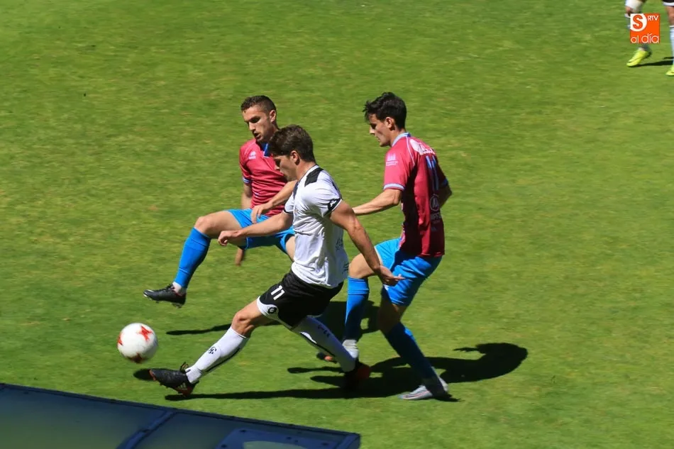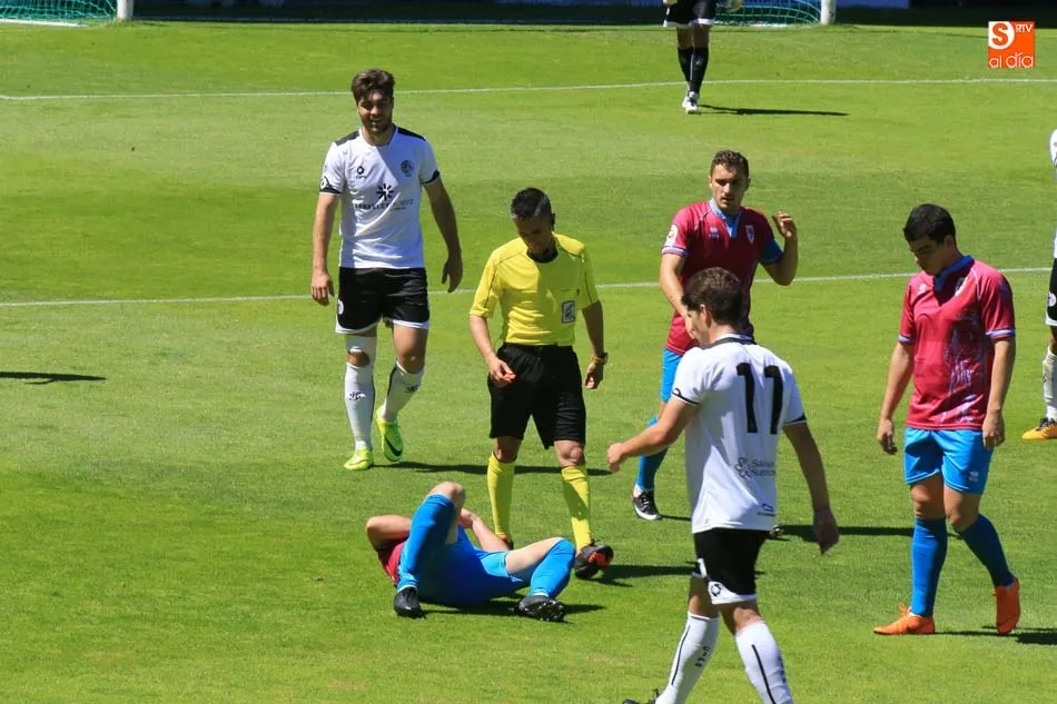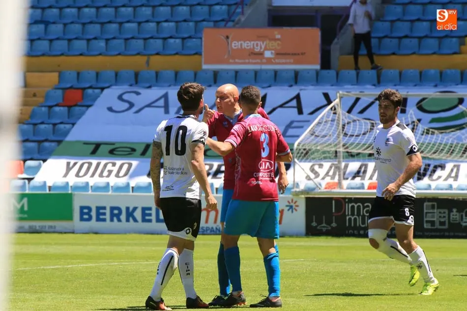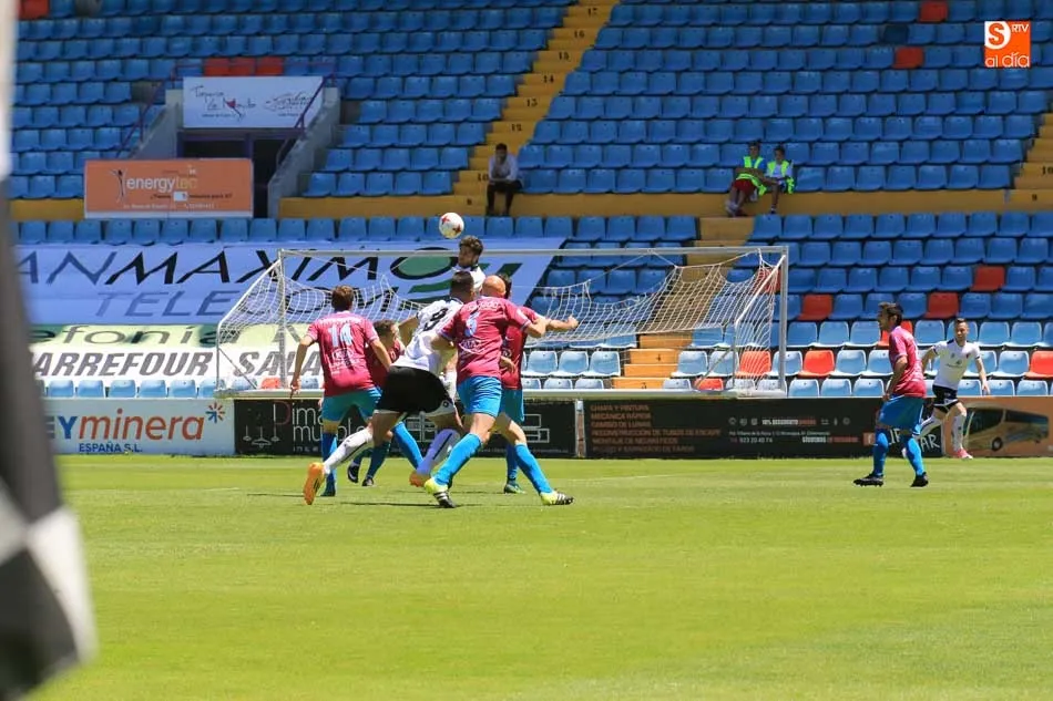 Tuvo el empate Juanan de cabeza en una falta botada por Amaro, pero al descanso se llegaba con el Salmantino UDS por debajo en el marcador. Ya en la segunda mitad, primero la tuvo Murci en un remate de cabeza y de nuevo el leonés se plantaba solo en el 54, pero su remate se estrellaba en el cuerpo de Lucas. Era la antesala del gol que llegaba en el 57 tras una buena jugada que termina Ortiz tras centro de Amaro (1-1).