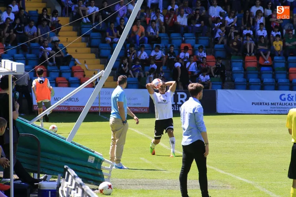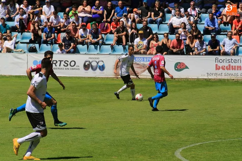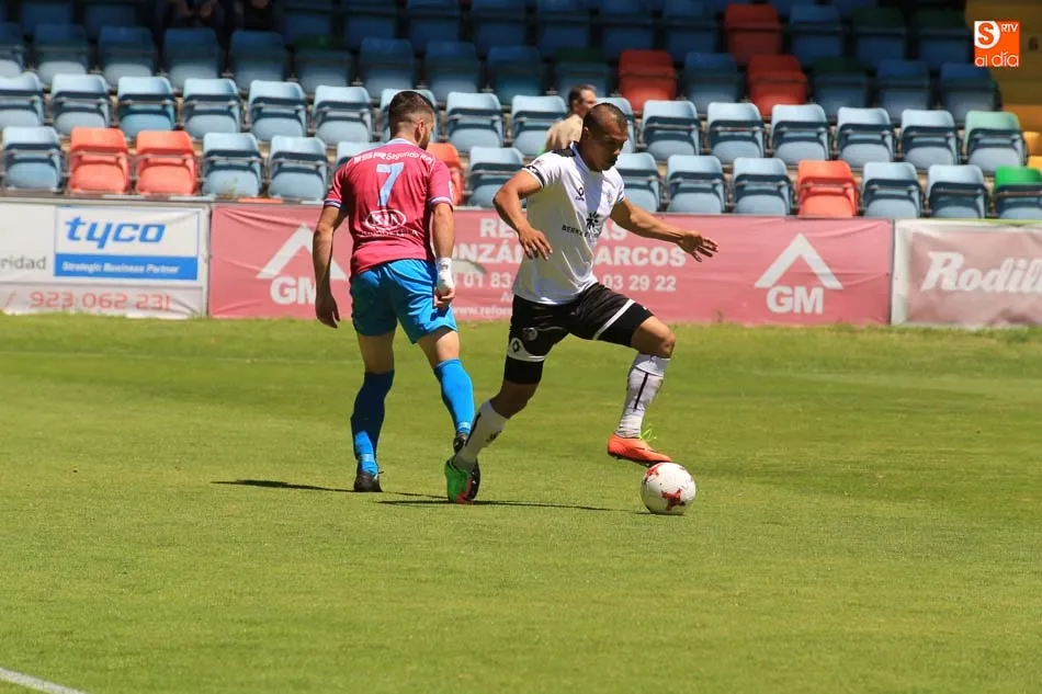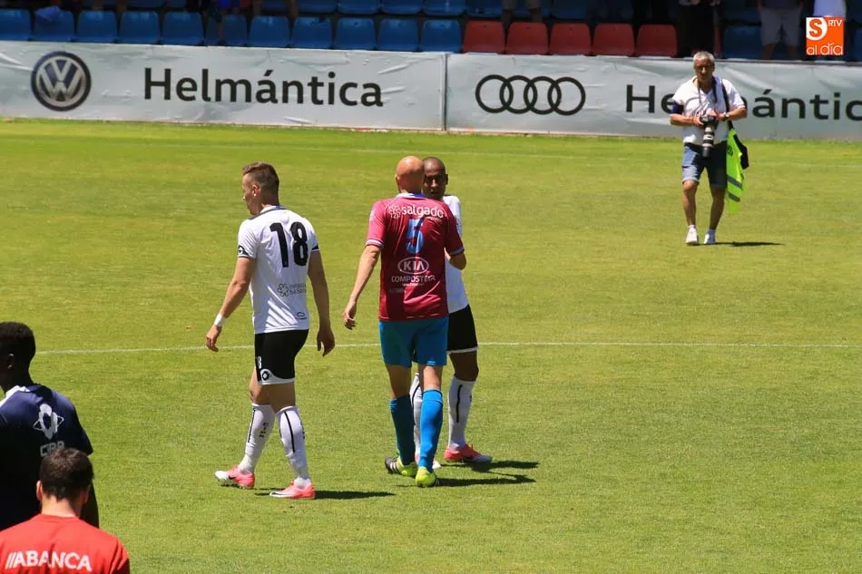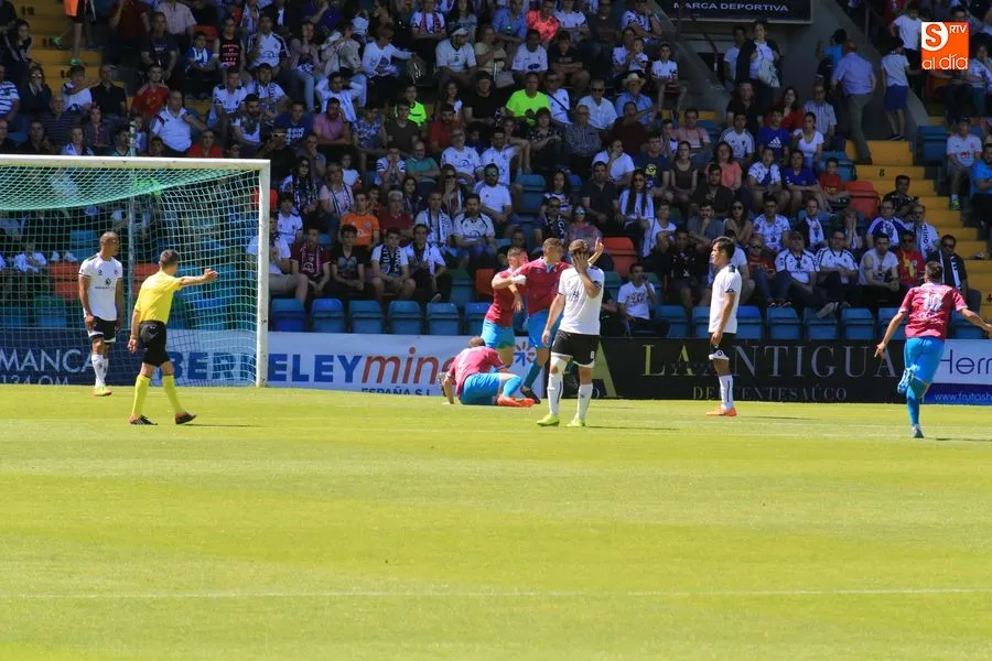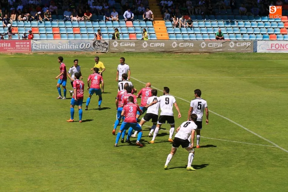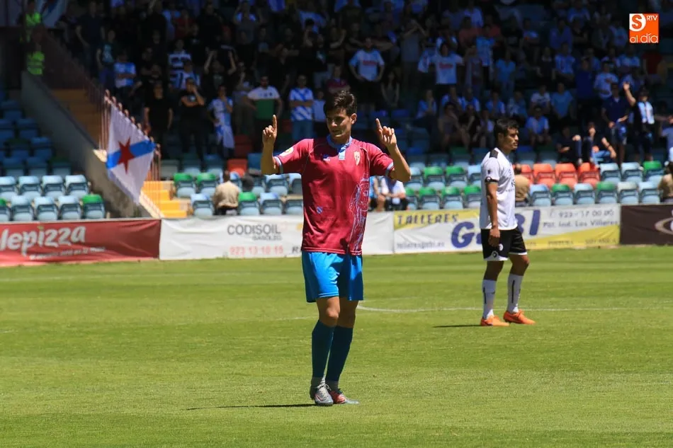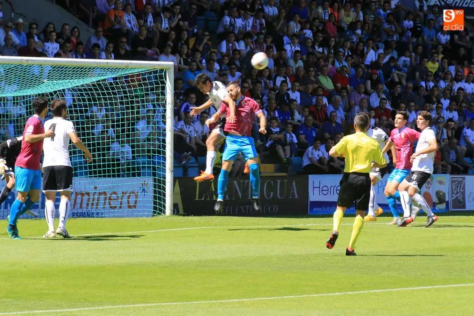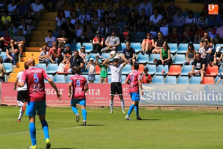 Tuvo el empate Juanan de cabeza en una falta botada por Amaro, pero al descanso se llegaba con el Salmantino UDS por debajo en el marcador. Ya en la segunda mitad, primero la tuvo Murci en un remate de cabeza y de nuevo el leonés se plantaba solo en el 54, pero su remate se estrellaba en el cuerpo de Lucas. Era la antesala del gol que llegaba en el 57 tras una buena jugada que termina Ortiz tras centro de Amaro (1-1).