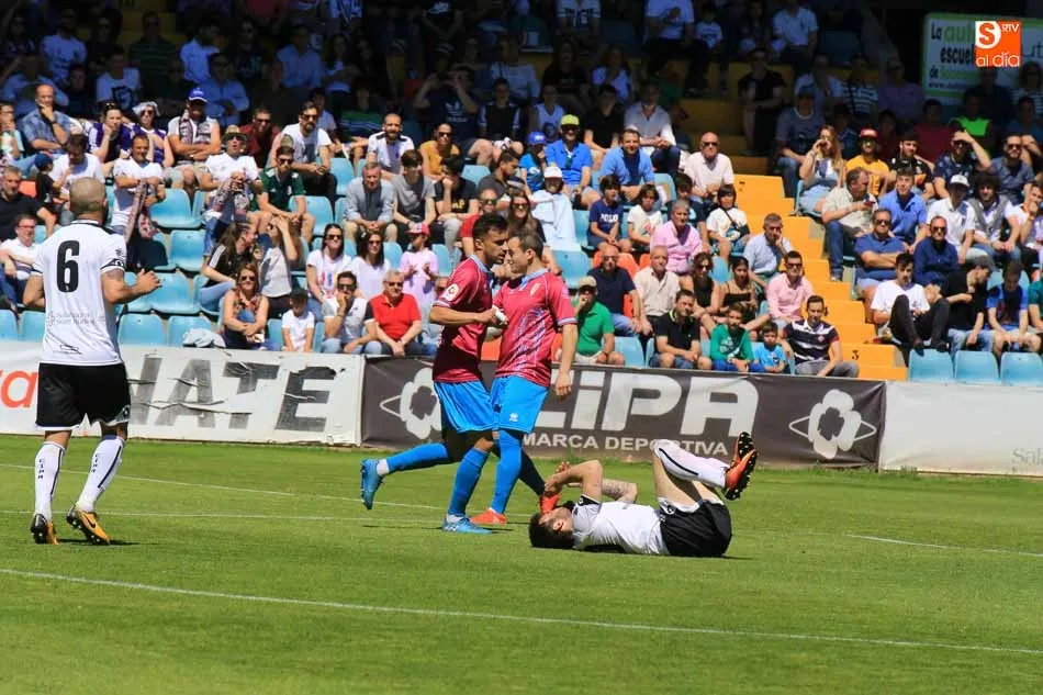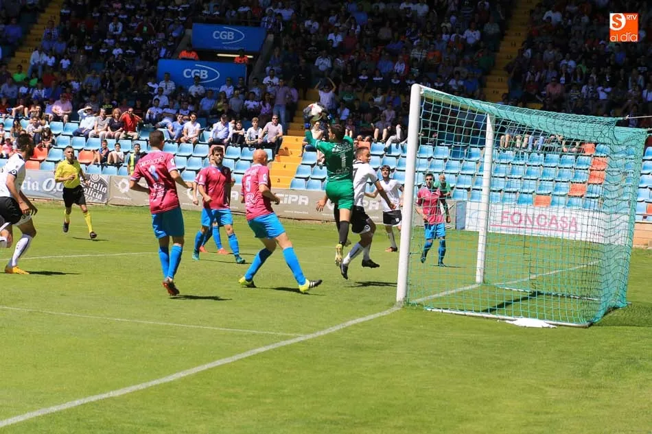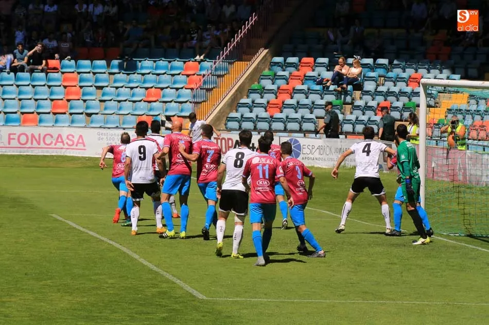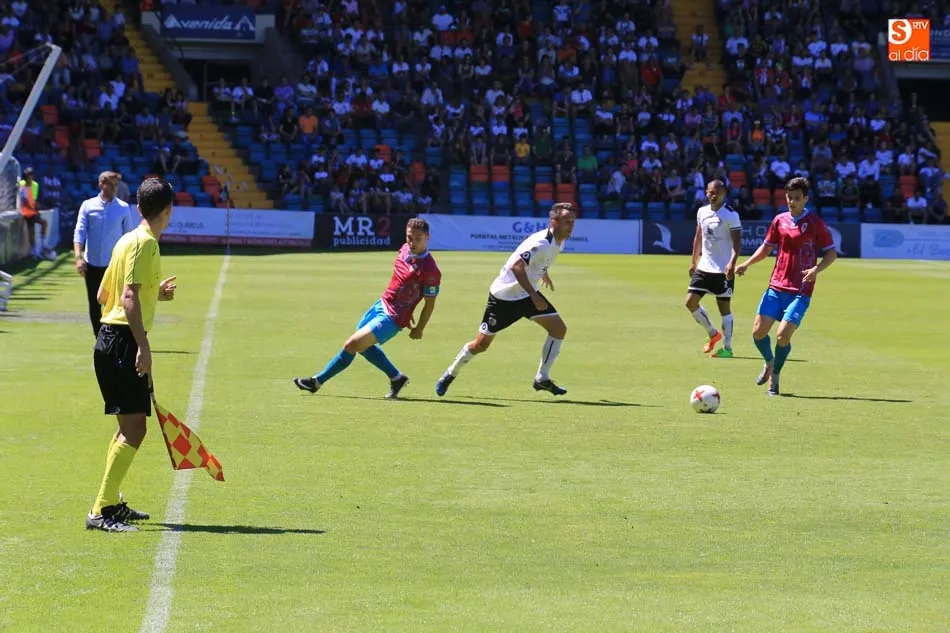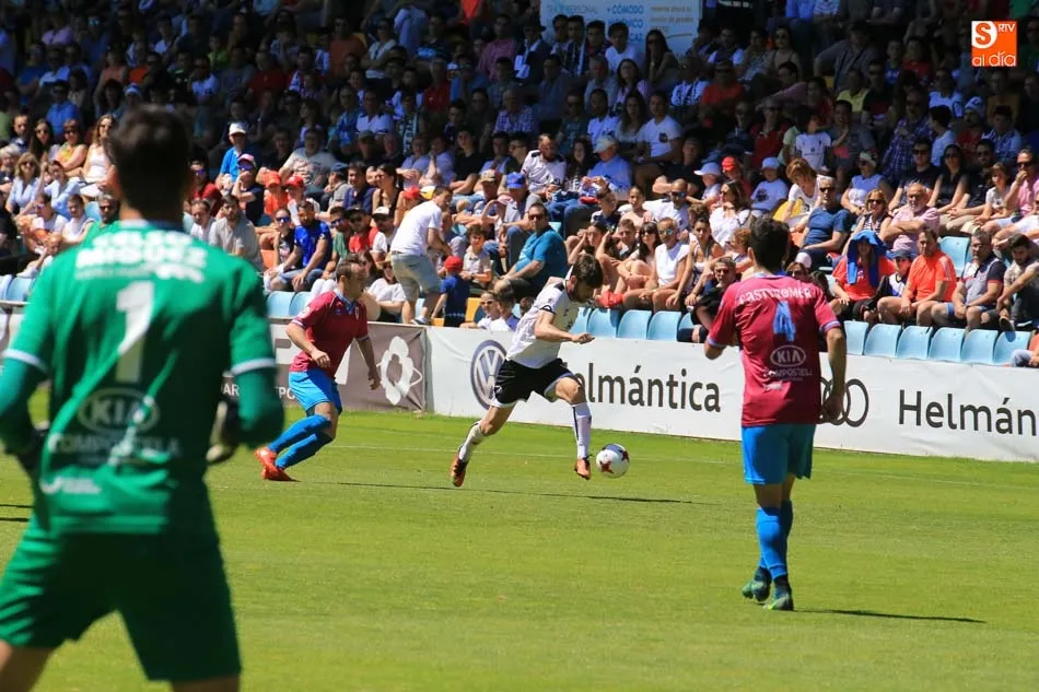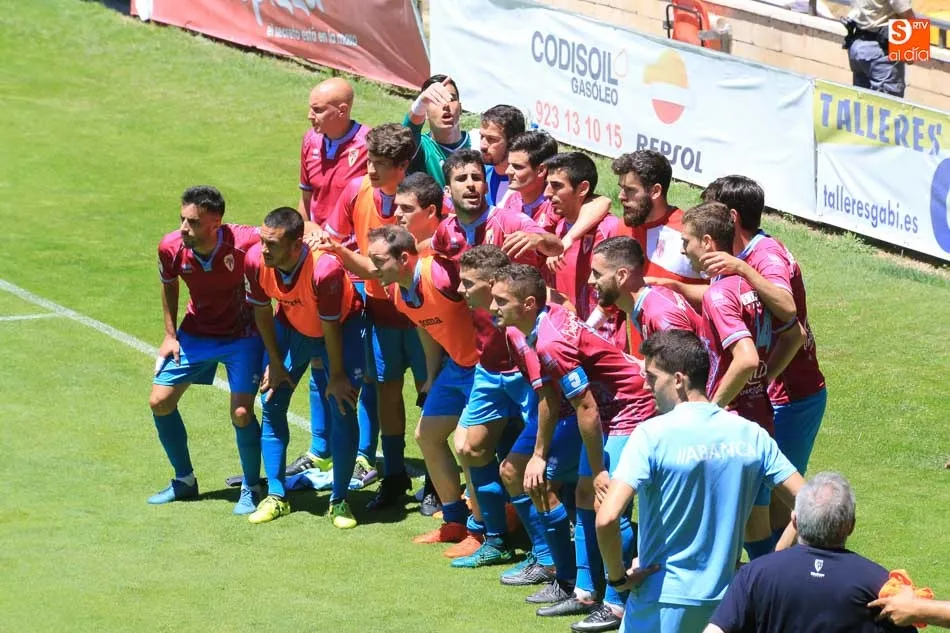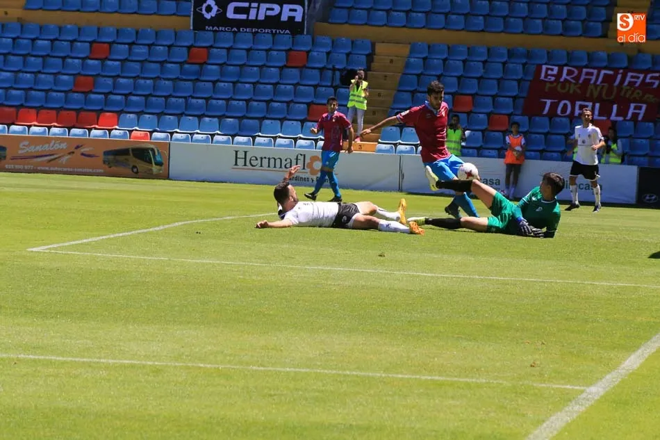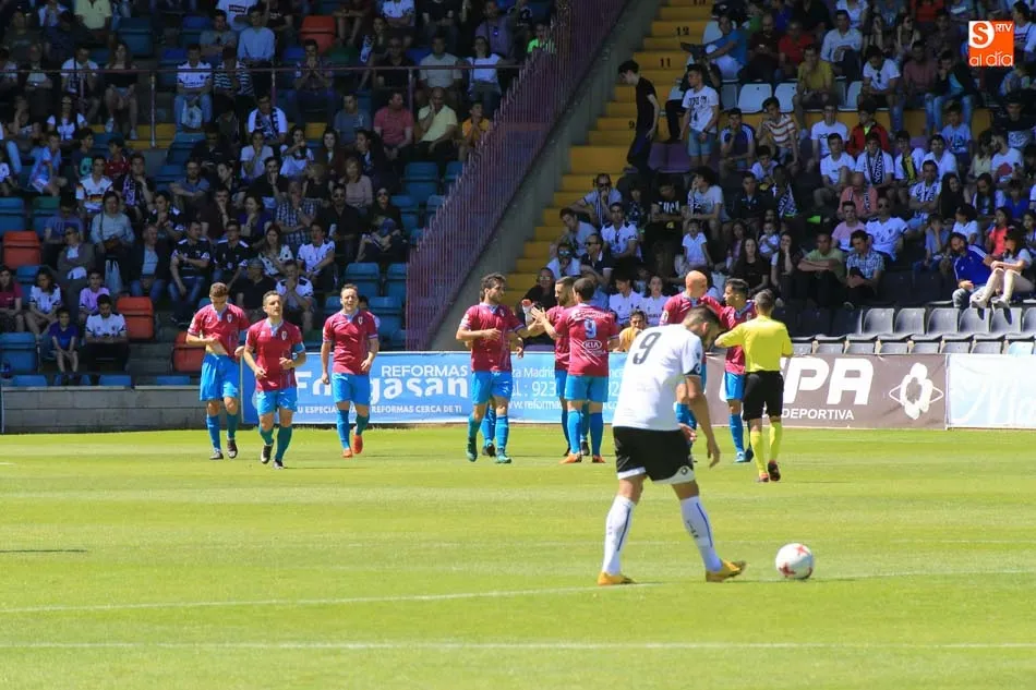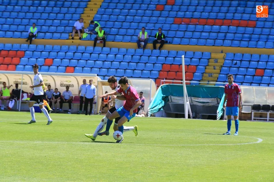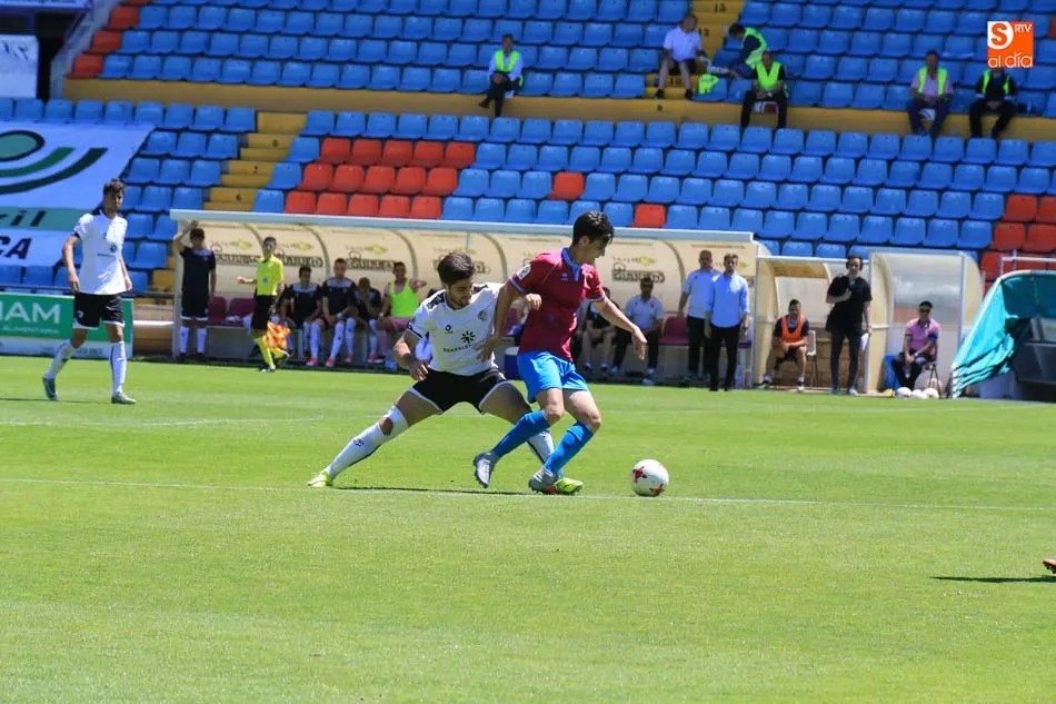 Tuvo el empate Juanan de cabeza en una falta botada por Amaro, pero al descanso se llegaba con el Salmantino UDS por debajo en el marcador. Ya en la segunda mitad, primero la tuvo Murci en un remate de cabeza y de nuevo el leonés se plantaba solo en el 54, pero su remate se estrellaba en el cuerpo de Lucas. Era la antesala del gol que llegaba en el 57 tras una buena jugada que termina Ortiz tras centro de Amaro (1-1).