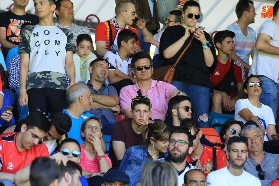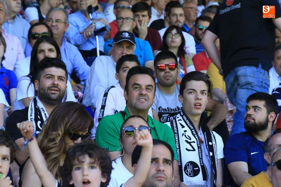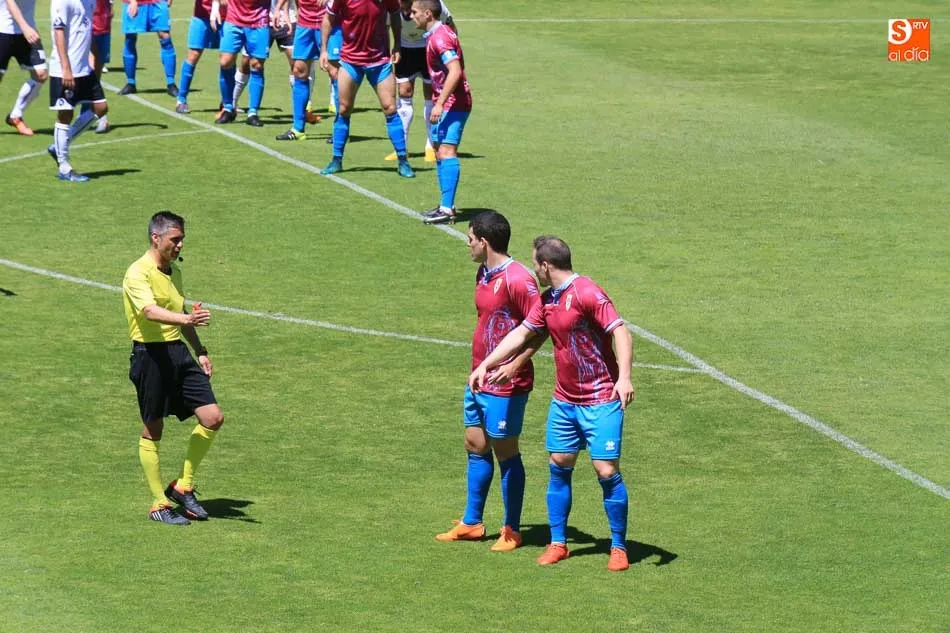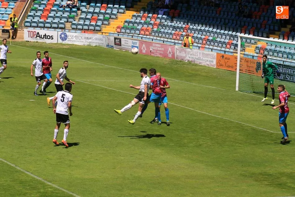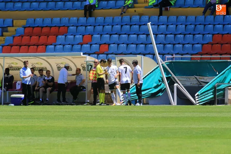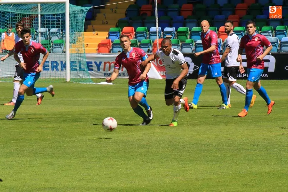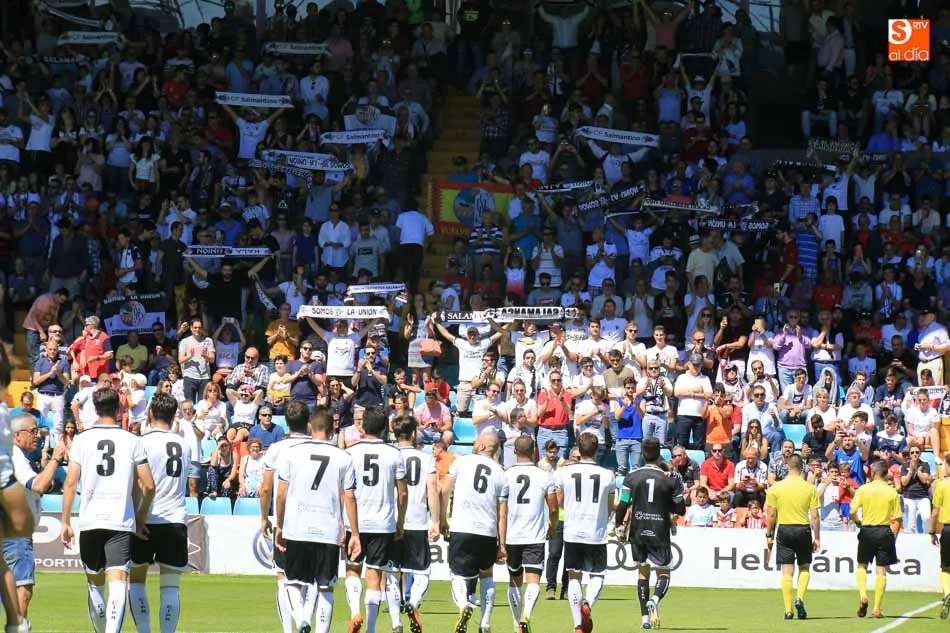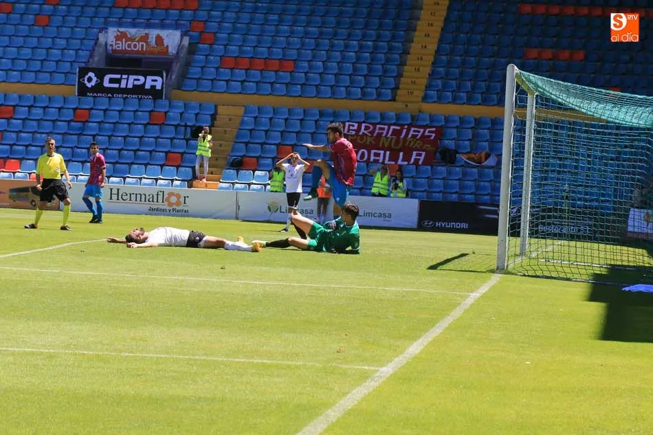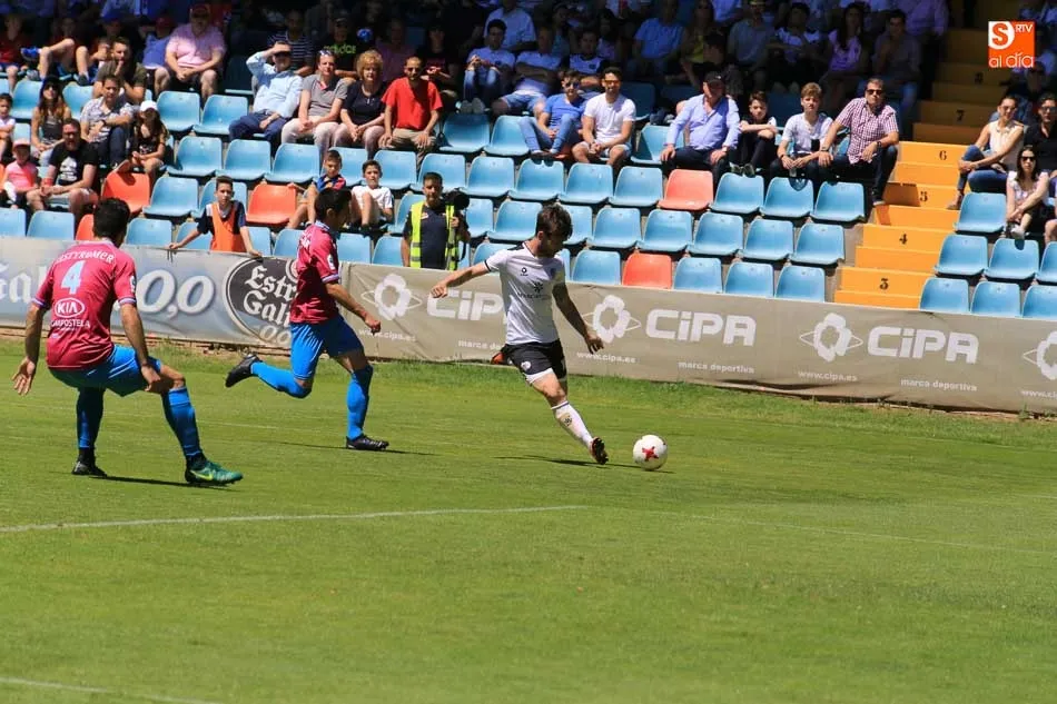Tuvo el empate Juanan de cabeza en una falta botada por Amaro, pero al descanso se llegaba con el Salmantino UDS por debajo en el marcador. Ya en la segunda mitad, primero la tuvo Murci en un remate de cabeza y de nuevo el leonés se plantaba solo en el 54, pero su remate se estrellaba en el cuerpo de Lucas. Era la antesala del gol que llegaba en el 57 tras una buena jugada que termina Ortiz tras centro de Amaro (1-1).