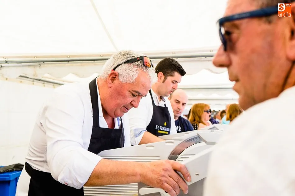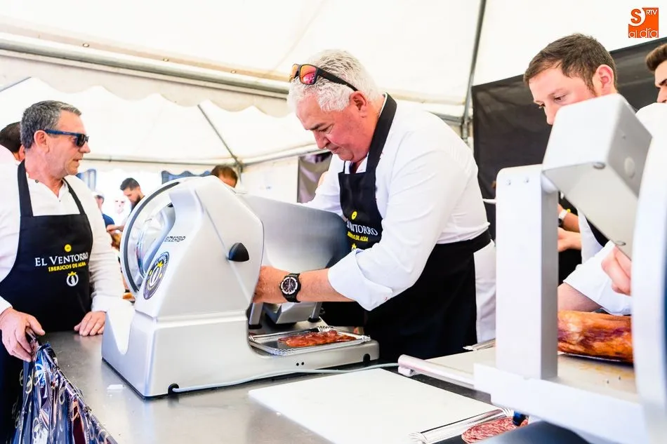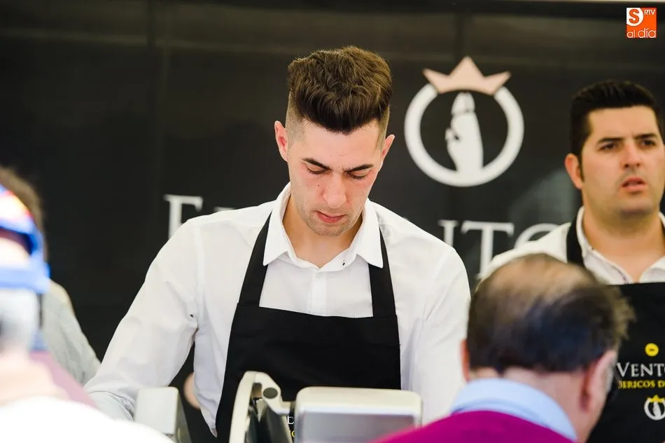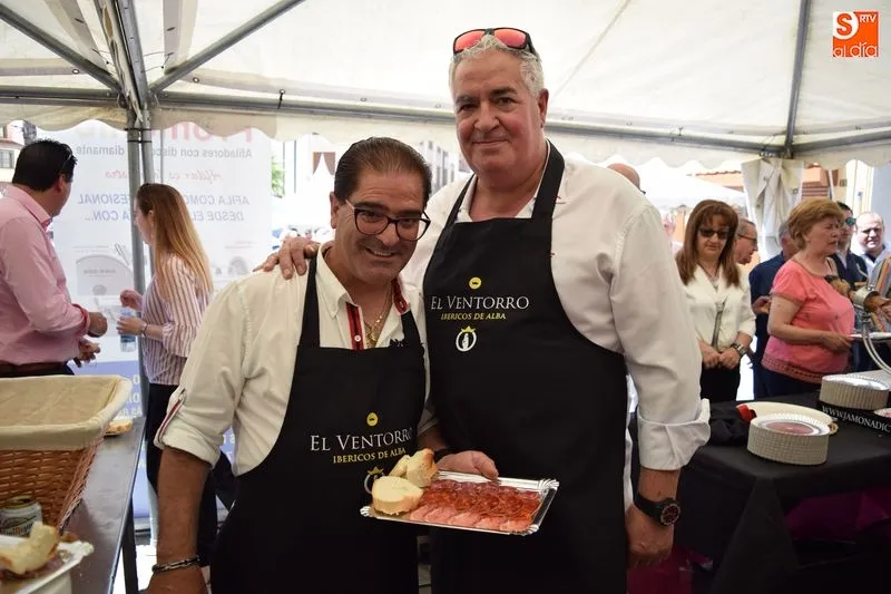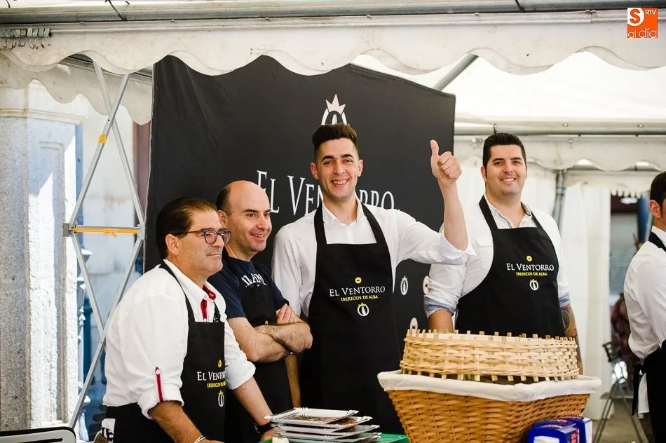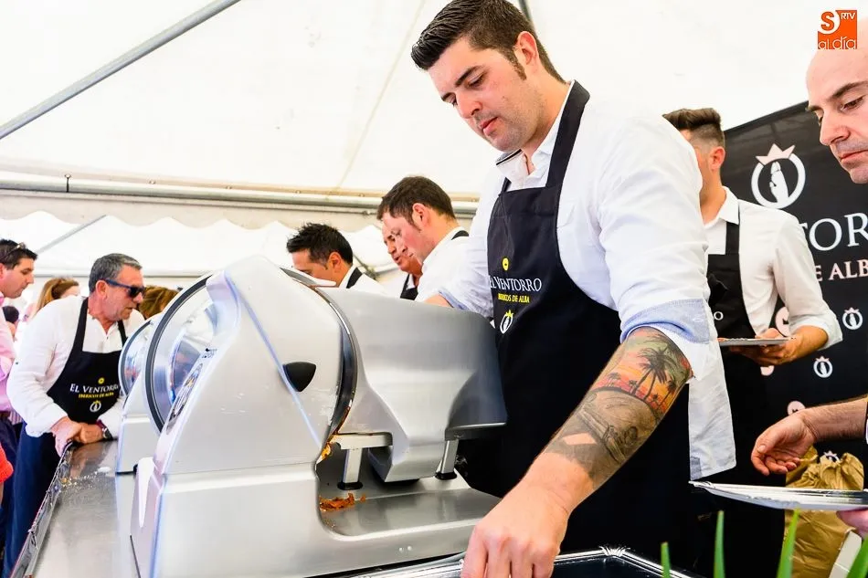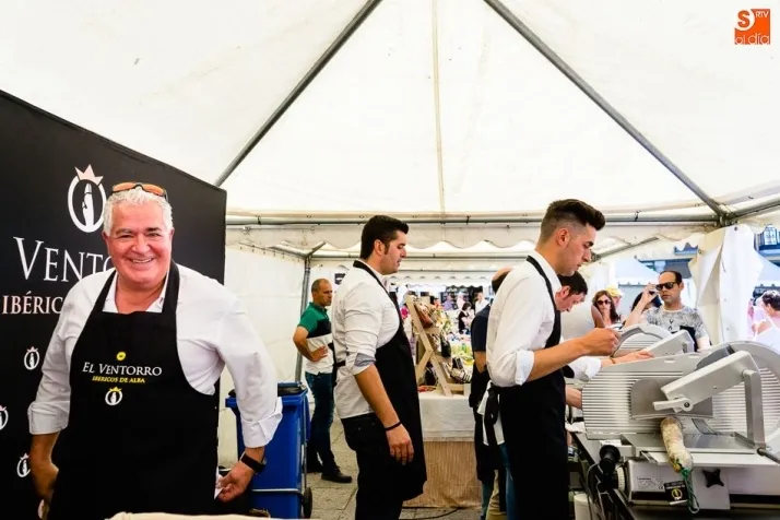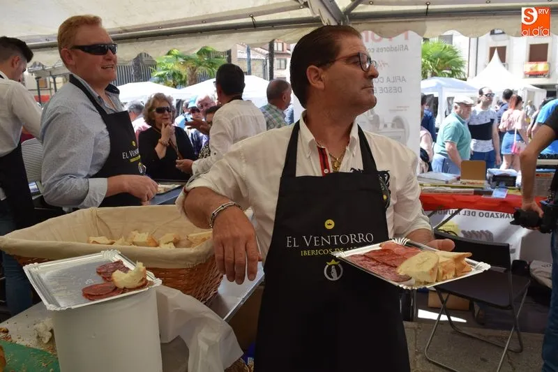 Las largas colas se sucedieron durante las más de dos horas que la empresa de Alba de Tormes estuvo ofreciendo productos ibéricos de manera gratuita para todo aquel que lo deseara. Productos ibéricos como chorizo, salchichón y lomo de El Ventorro que sirvieron para poner sabor a la Feria de San Antonio.