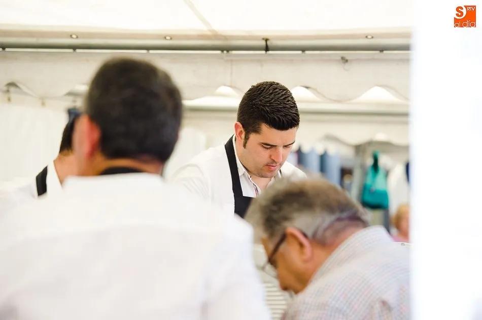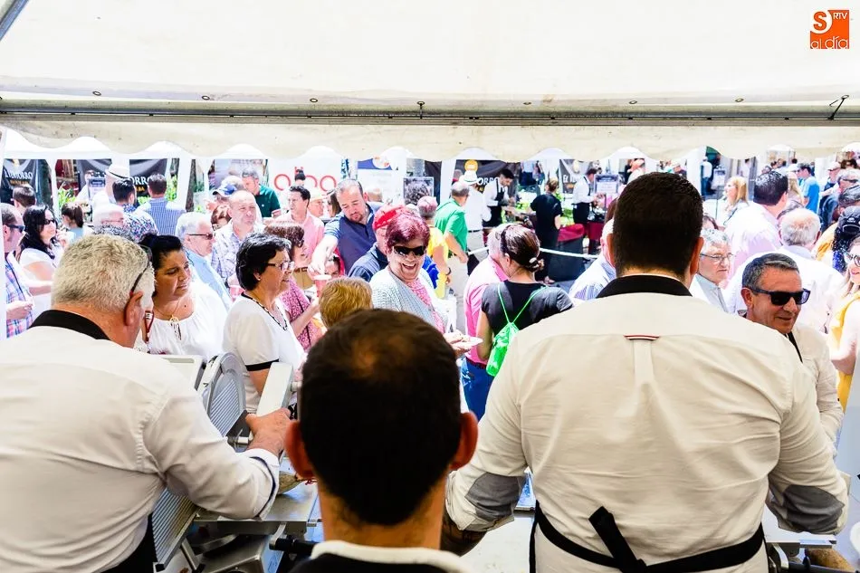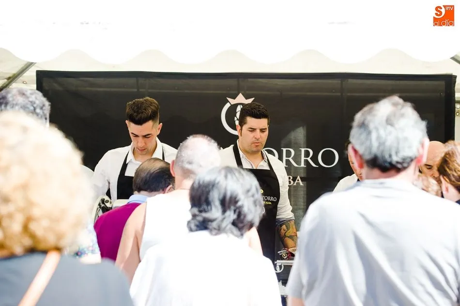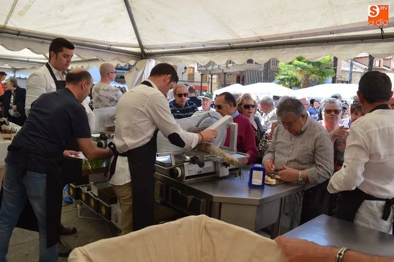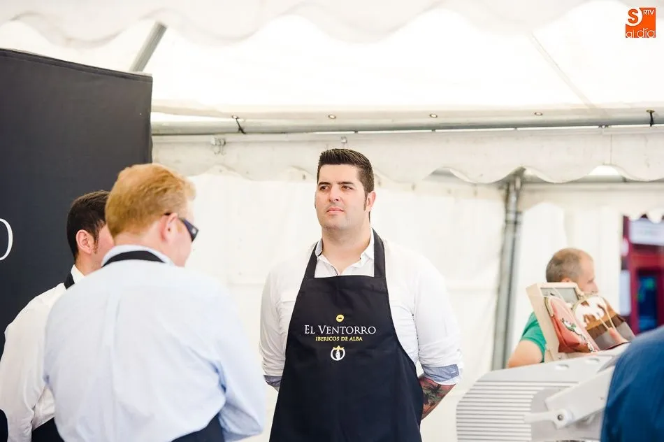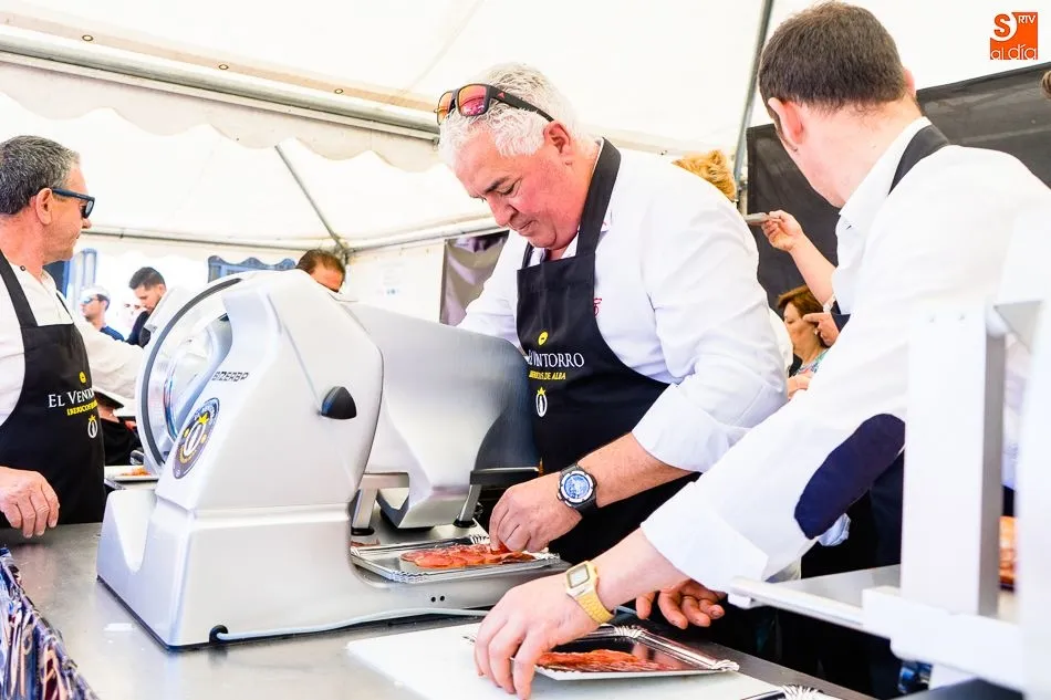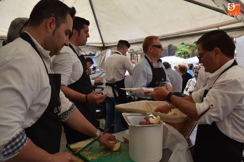 Las largas colas se sucedieron durante las más de dos horas que la empresa de Alba de Tormes estuvo ofreciendo productos ibéricos de manera gratuita para todo aquel que lo deseara. Productos ibéricos como chorizo, salchichón y lomo de El Ventorro que sirvieron para poner sabor a la Feria de San Antonio.