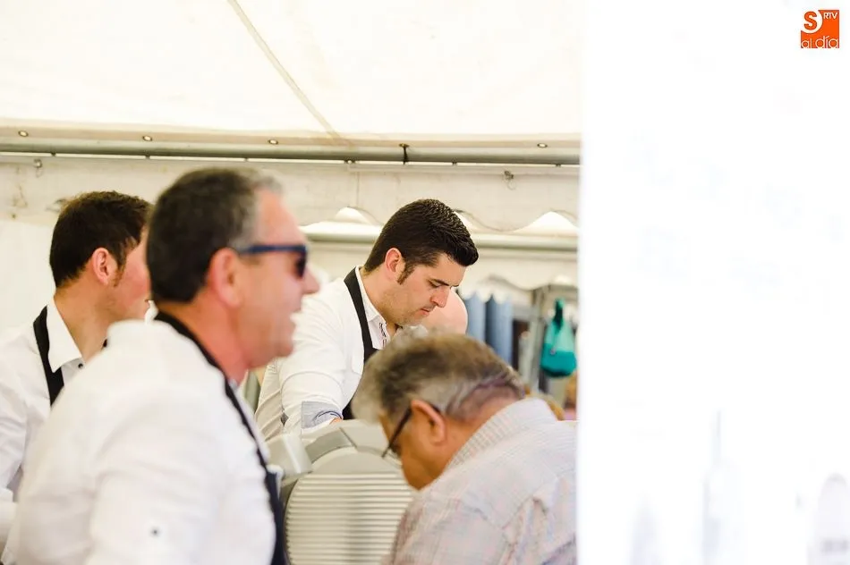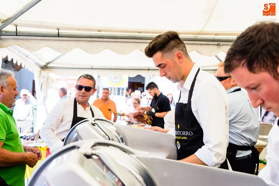 ALBA DE TORMES | Largas colas durante toda la mañana en el expositor de El Ventorro para poder disfrutar de manera gratuita de los mejores ibéricos