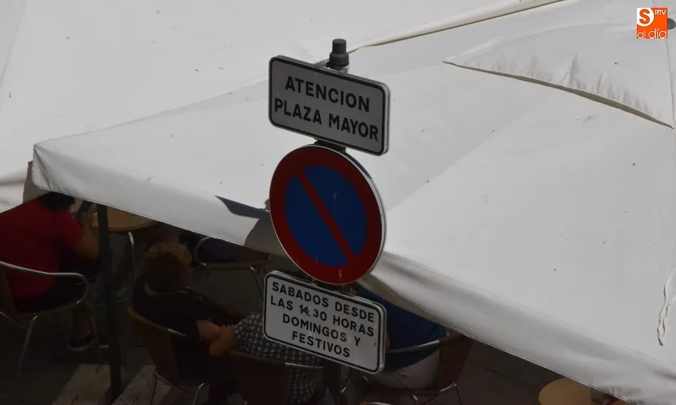 A ello contribuía que los parquímetros de la ORA no se desactivaron hasta el segundo tramo de la mañana (colocándose un cartel indicando la prohibición de aparcamiento en la Plaza Mayor hasta el 16 de septiembre), y especialmente, a que aún no se han instalado las señales de tráfico veraniegas.