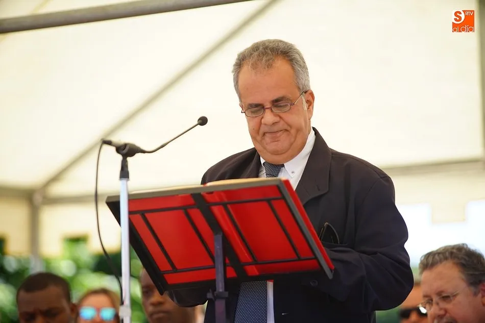 Entre ellos se encontraban los ocho integrantes de Bicigroup Salamanca que cubrieron los 33 kilómetros que separan el santuario de la capital salmantina, así como cientos de peregrinos que partieron desde la Catedral de Salamanca. Con la imagen del Cristo colocada en el patio del santuario, se han iniciado las misas a las 08:00 horas, repitiéndose a las 9:00, 10:00 y 11:00 horas. A continuación, se ha ofrecido la misa principal a mediodía, a la que han asistido miembros de la Diputación de Salamanca, con el presidente, Javier Iglesias, acompañando al alcalde de Veguillas, José María Sánchez. Además de otros diputados y concejales.