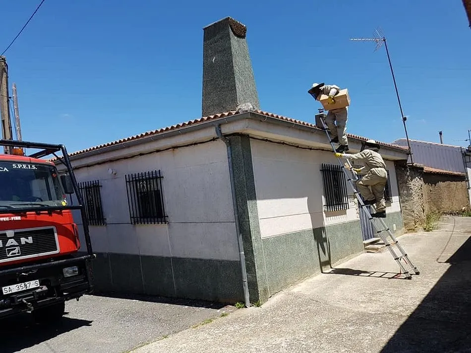 Tal y como preveían los miembros del parque de Bomberos de Guijuelo, las colmenas de abejas se siguen reproduciendo en estos días debido a la abundancia de lluvias, las temperaturas y el gran número de flores en el entorno de la comarca.