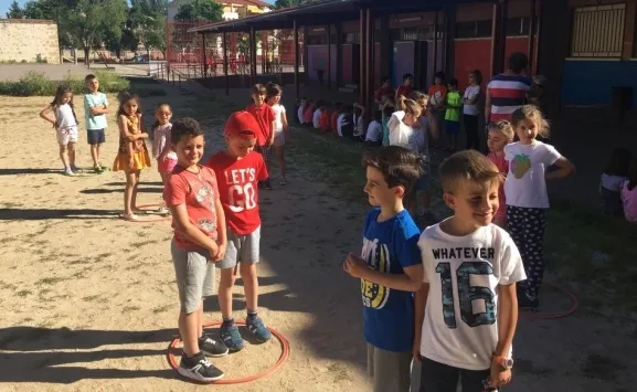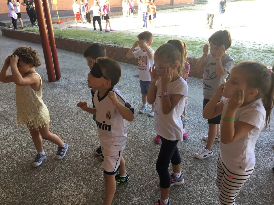 En lo que se refiere a la di-capacidad visual, los alumnos jugaron al clásico juego de El escondite inglés, pero con los ojos tapados. En caso de fallar, y de moverse una vez completada la frase de ?Al escondite inglés, sin mover los manos ni los pies?, los alumnos con los ojos tapados fueron llevados hasta la línea de salida por alumnos de 6º.