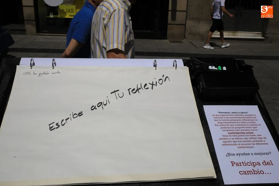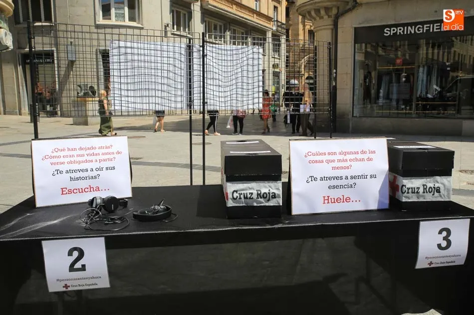 Precisamente, ?Personas antes y ahora? es el lema de la exposición que se puede visitar durante todo el día en la Plaza del Liceo, una exposición interactiva y emocional que tiene el objetivo de concienciar y sensibilizar sobre la problemática de estas personas. ?Intentamos provocar las reflexiones y la empatía y para ello hemos echado mano de las sensaciones físicas con paneles y fotografías que evocan imágenes y recuerdos y nos pongamos en la piel de las personas que llegan a la ciudad y qué necesitan?, han señalado desde Cruz Roja Salamanca.