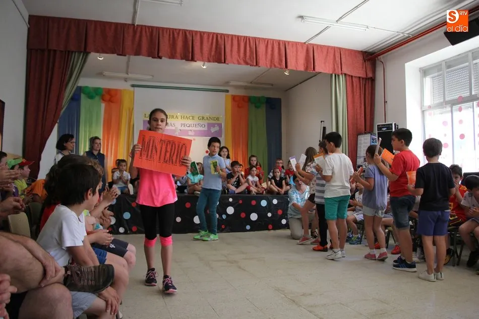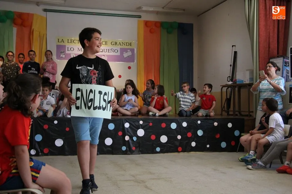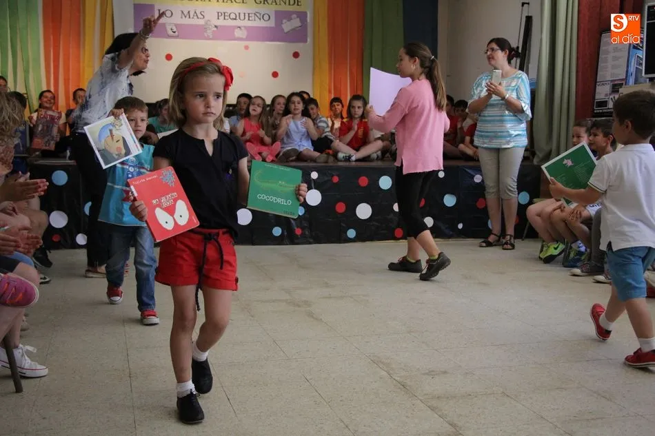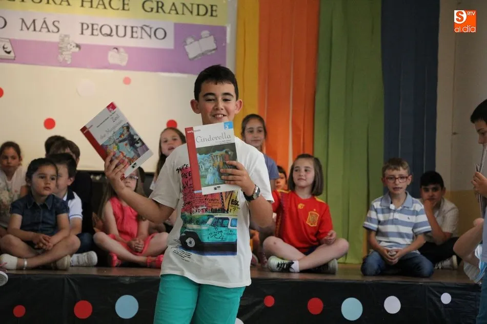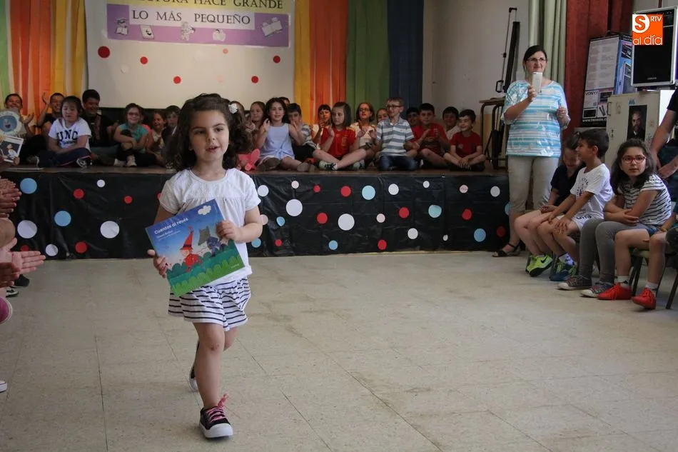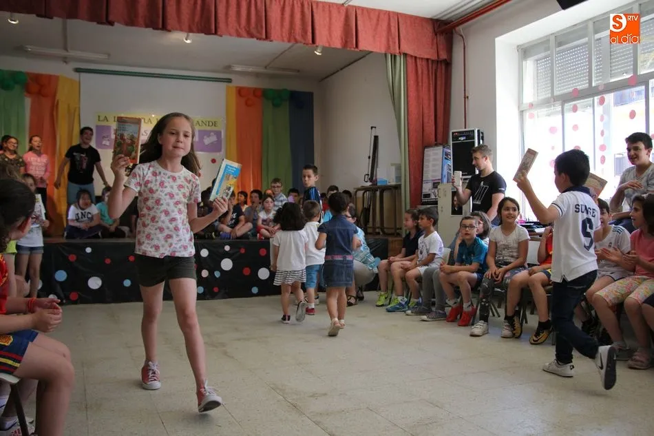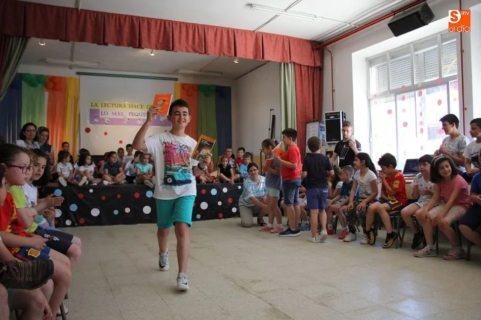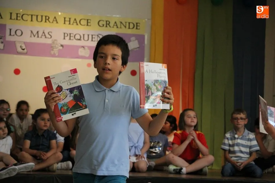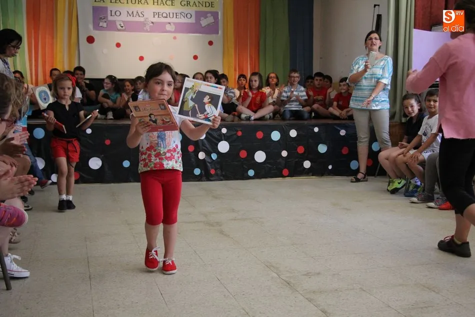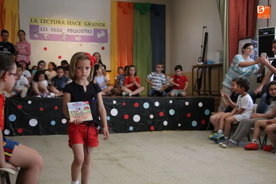 Con el lema ?La lectura hace grande lo más pequeño?, un grupo de niños y niñas, libro en mano, desfilaba con desenvoltura ante la atenta mirada de sus compañeros al ritmo de la música acorde con la temática, literatura infantil, de aventuras, misterio, humor, en francés o en inglés.