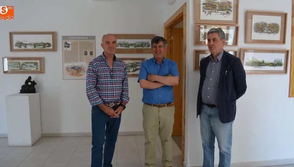 El Alcalde de Béjar, Alejo Riñones y el concejal de Medio Ambiente, Alejandro Romero, han estado presentes en la inauguración de la exposición de Sanz Belloso. Han señalado que lo que une al Ayuntamiento con el autor de la muestra es El Bosque, en el que se están llevando a cabo obras de rehabilitación del jardín de entrada al palacete dirigidas y proyectadas por él.