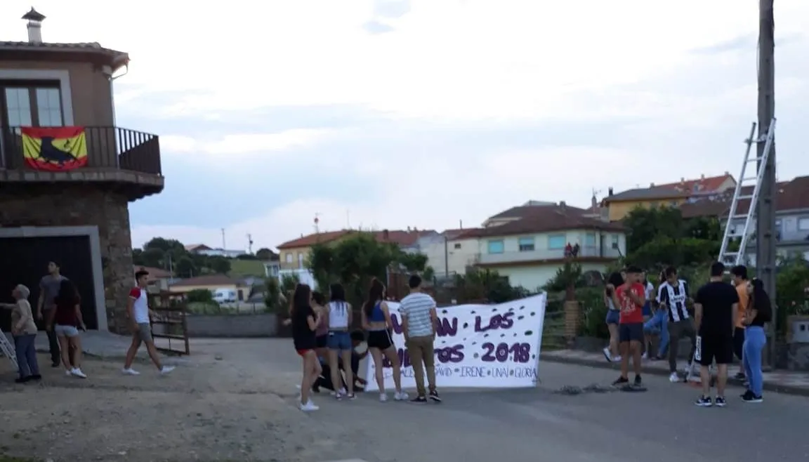 Los Quintos 2018 de la localidad de Robleda (Kike, Valeria, David, Irene, Unai y Gloria) cumplieron en la jornada del jueves con una de las ?tradiciones? vinculadas a las fiestas que darán comienzo este jueves: la colocación de varias pancartas por las calles de la localidad alusivas a ellos. Para llevar a cabo la tarea, los Quintos estuvieron acompañados de varias personas más, casi todas ellas jóvenes.