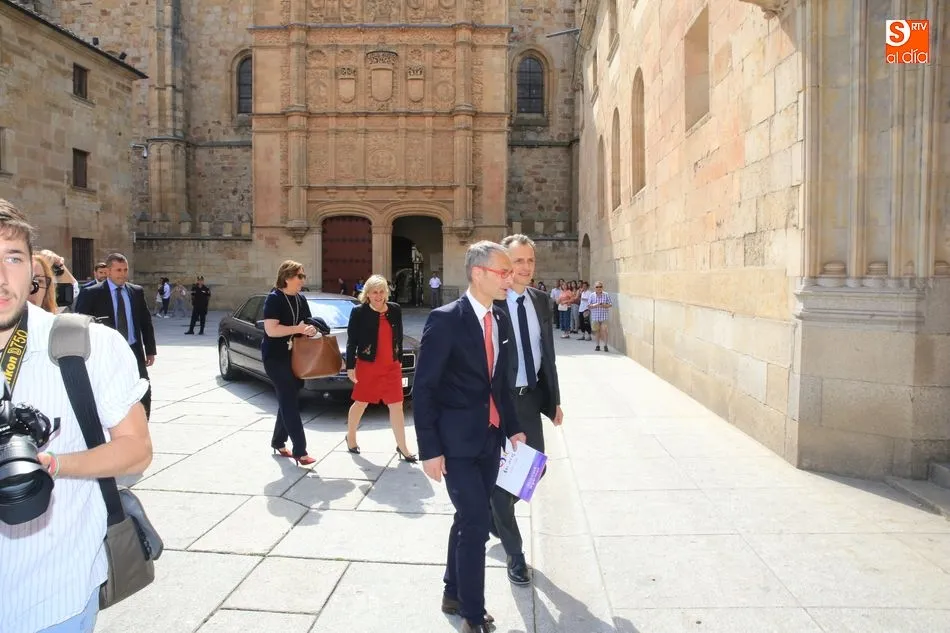 Duque ha destacado la innovación y la investigación como ejes prioritarios de las universidades, afirmando que hay que mirar al futuro ?sin perder de vista la herencia del pasado?. El ministro también ha hecho referencia a la especial vinculación de la Universidad de Salamanca con Iberoamérica, animando a la institución a aprovechar la pujanza del habla hispana para crear conocimiento en español ?y no quedarnos atrás?.