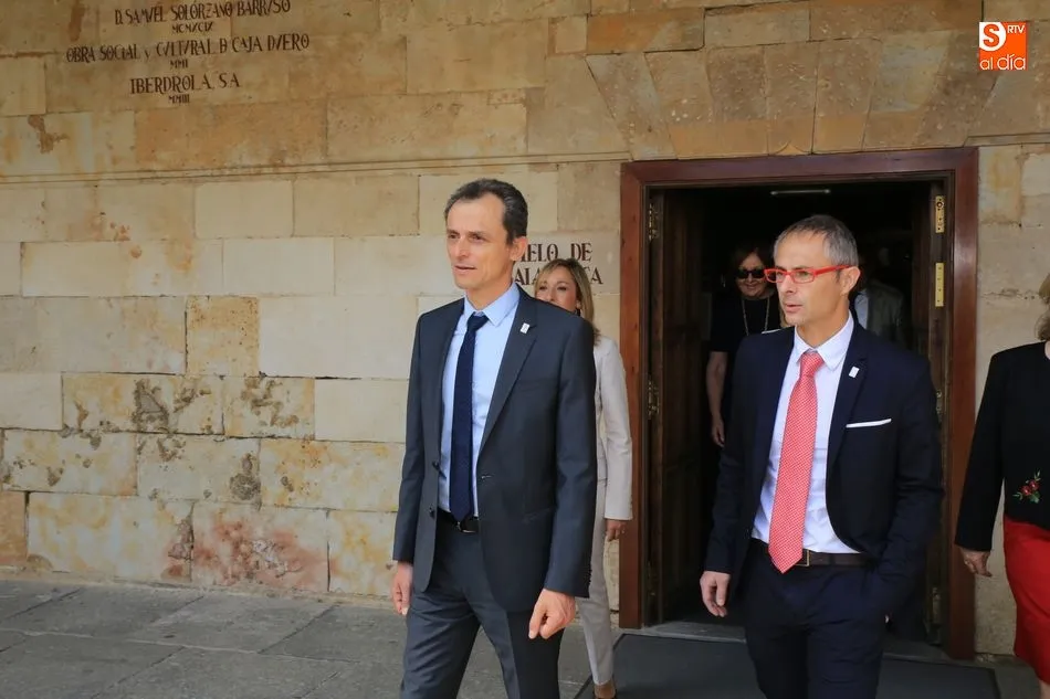 Pedro Duque, el nuevo ministro de Ciencia, Innovación y Universidades, ha comenzado en Salamanca su ronda de contactos con las universidades. Tras ser recibido por el rector, Ricardo Rivero, ha visitado el Cielo de Salamanca y ha mantenido un encuentro con un grupo de investigadores de la USAL.