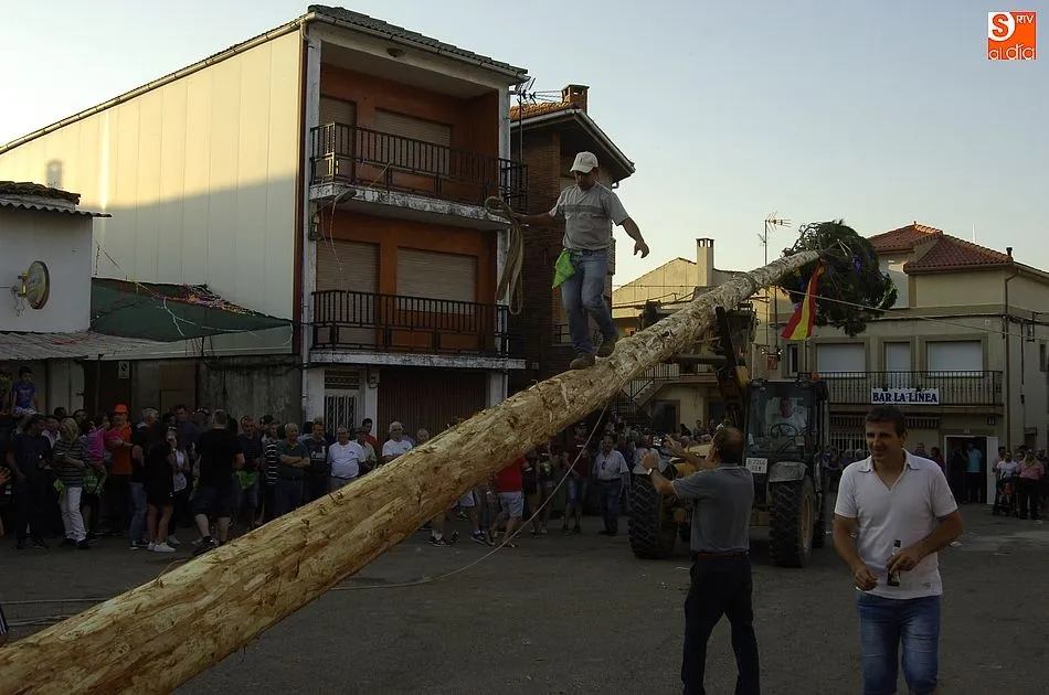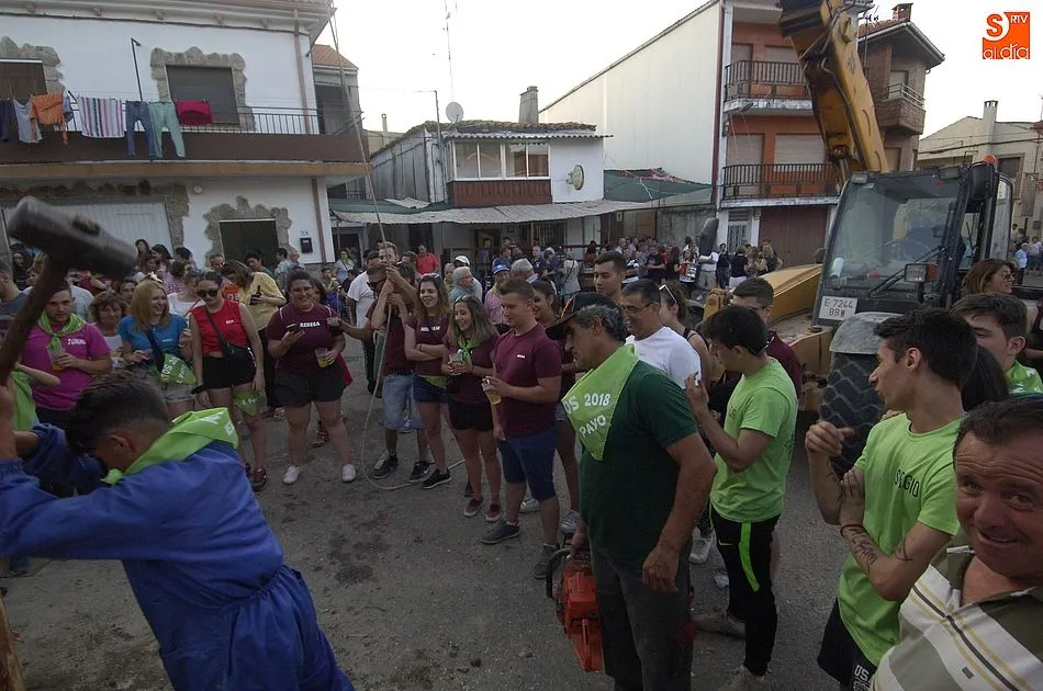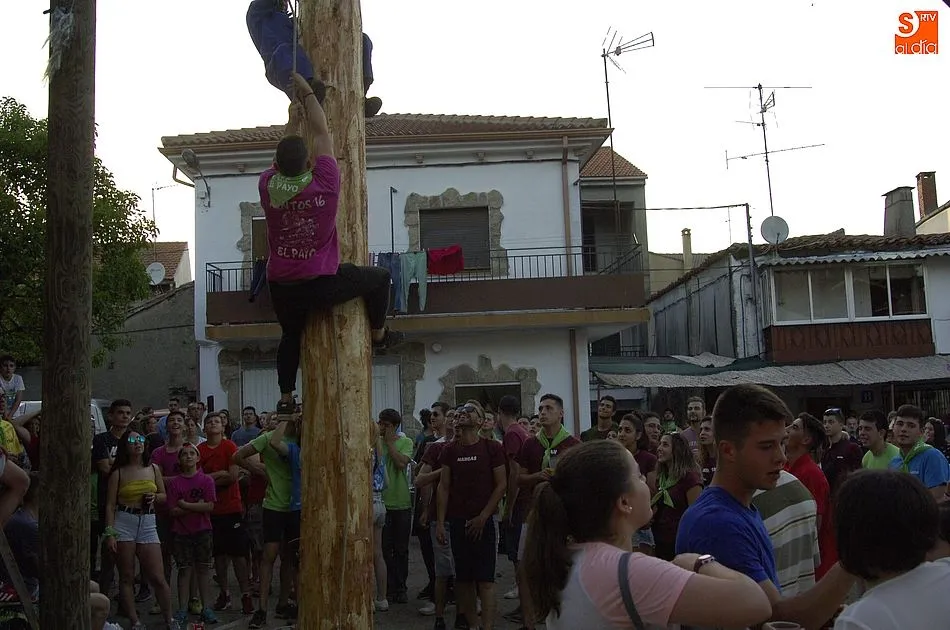 Como marca la tradición, el pino que ejerce de viga -de 24 metros de altura, y traído de los amplios pinares de El Rebollar- fue remolcado en un tractor hasta la Plaza con un ingente número de mozos y mozas subidos al mismo. En la operación de izado, tanto los cuatro quintos de este año como el resto de mozos fueron ayudados por veteranos en estas lides en El Payo, quienes tuvieron la oportunidad de recordar cuando les tocó a ellos ser los protagonistas.
