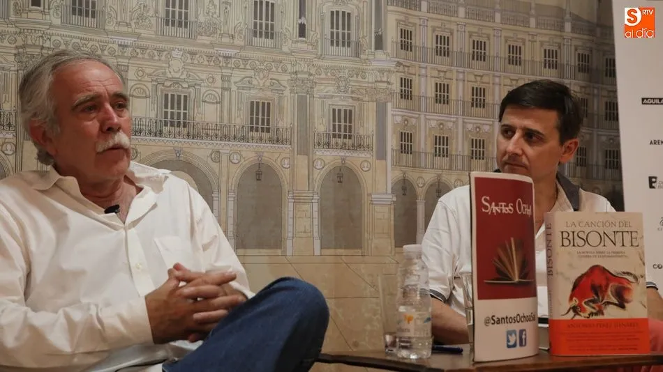 El escritor y periodista Antonio Pérez Henares ha presentado este viernes en Salamanca su último libro, ?La canción del bisonte?, una reveladora novela sobre el origen de la humanidad que el autor ha desgranado ante el público salmantino en la Librería Santos Ochoa.