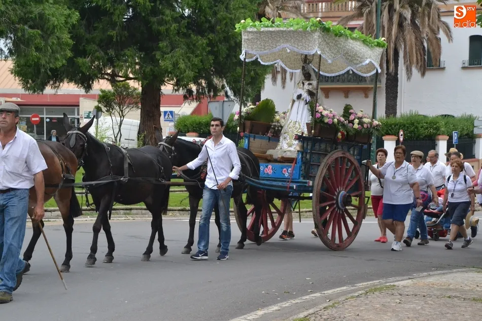 Tras ello, los romeros tomaron la Avenida Conde de Foxá, y posteriormente la Calleja de Valhondo, en dirección a la Ermita del Alto, donde tuvo lugar la segunda parada del trayecto con la correspondiente bendición. A partir de ahí se siguió hacia las fincas Gazapos y San Miguel para degustar sendos aperitivos. A la hora de publicarse esta información, los participantes en la Romería están comiendo en la finca El Baldío de Serradilla del Llano.