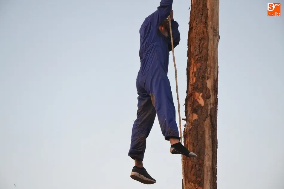 A continuación, otros valientes dieron lo mejor de sí para llegar a desatar las cuerdas que habían ayudado a guiar la operación de izado. Durante todo ese tiempo estuvo tocando la charanga, animándose a bailar los más jóvenes, que dejaron constancia del momento en numerosas fotos. Tras casi dos horas, la Charanga inició el camino de regreso hacia la entrada a Robleda (donde habían dejado su vehículo), siendo acompañados por un grupo de jóvenes que, literalmente, no quería que se fueran.