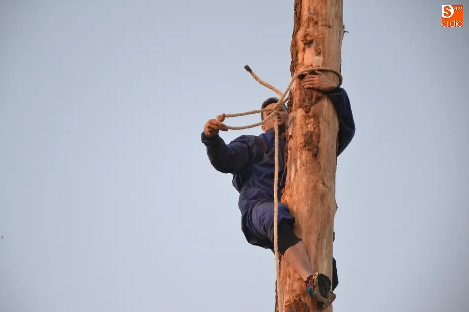 ROBLEDA | Los quintos se animaron a intentar trepar el pino recién plantado