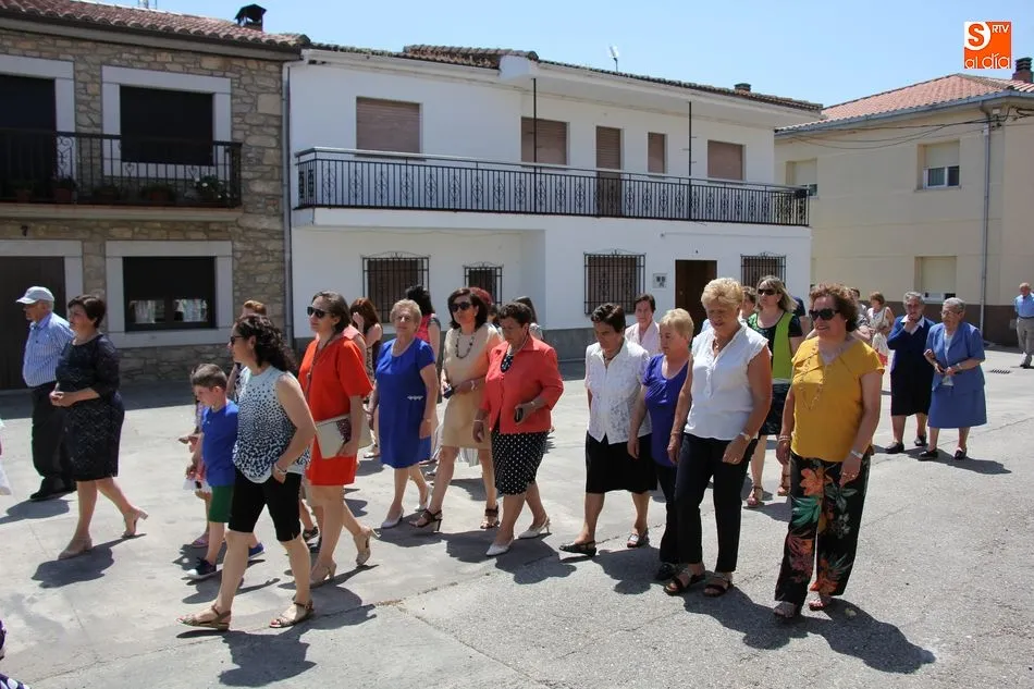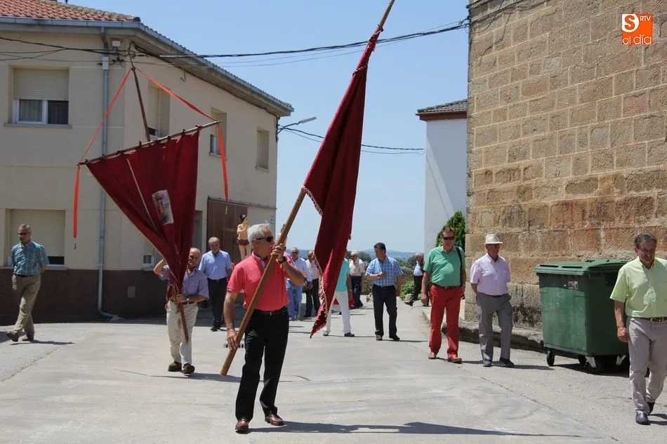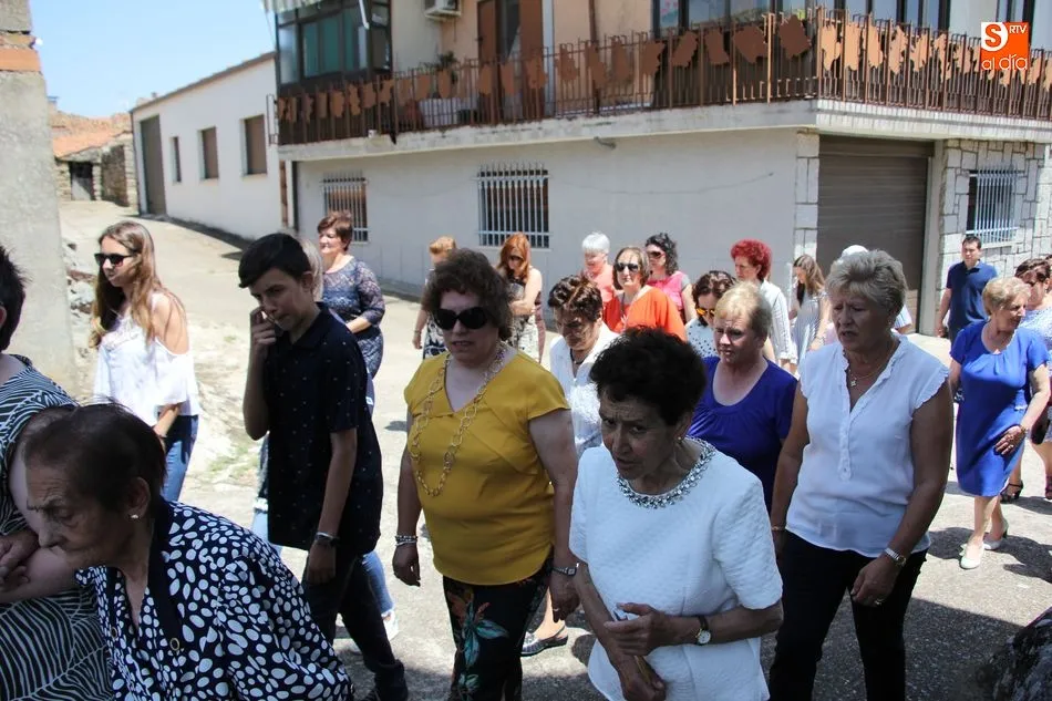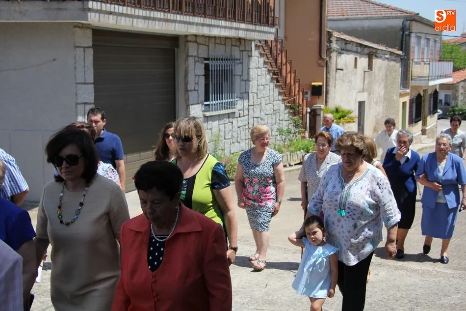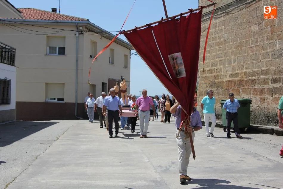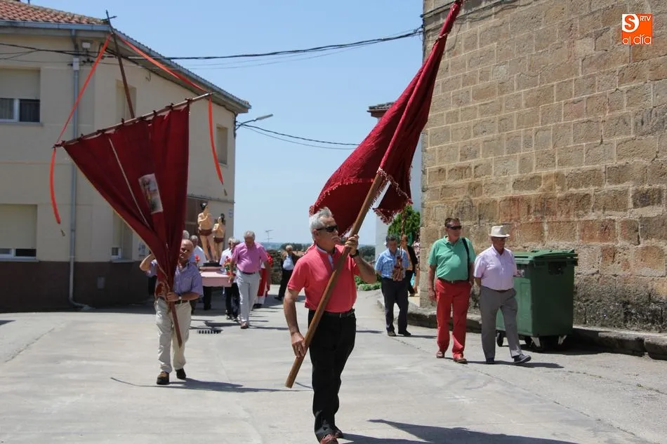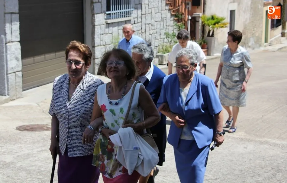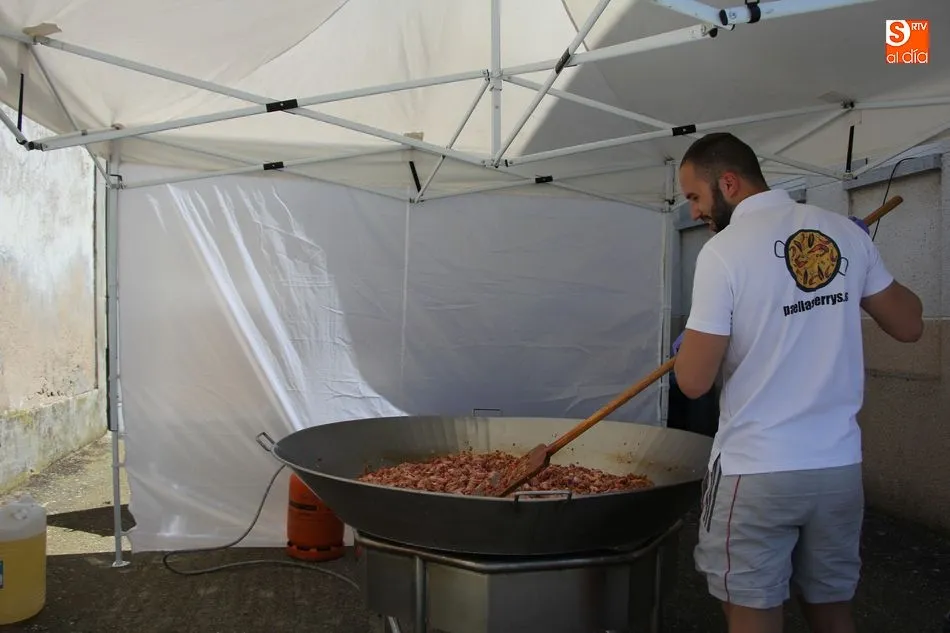Tras la misa y la procesión de los santos por las calles del pueblo, el Ayuntamiento brindó a más de un centenar vecinos un exquisito menú a base de jamón con melón de primer plato, paella de segundo, y helado de dos sabores para apaciguar el calor de la mañana, todo preparado por Luis y Pablo de ?PaellasJerrys? y acompañado con limonada o refrescos.