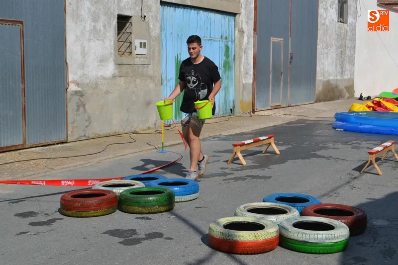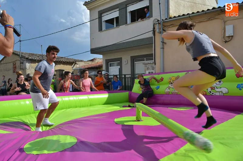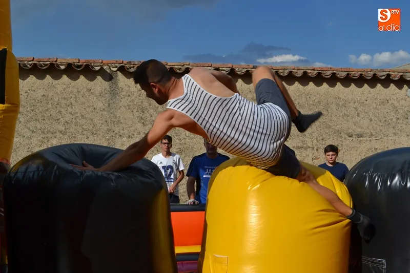 y con una animada ambientación se fueron sucediendo vibrantes pruebas, que contaron con numerosos hinchables, a los que se unieron juegos como la divertida ?patata caliente? o los ?bolos humanos? generando constantes carcajadas y una jornada diferente disfrutadas por peñistas y familias enteras desde su inicio.