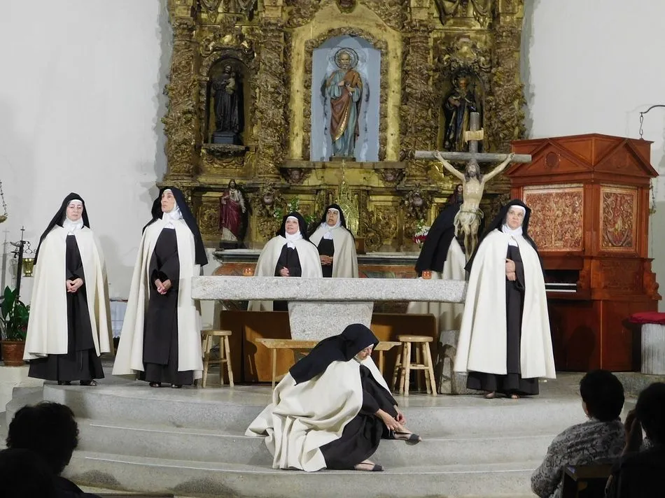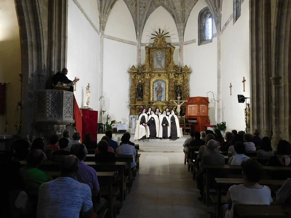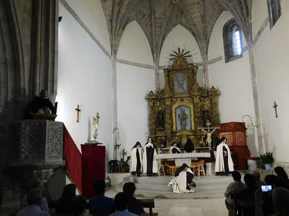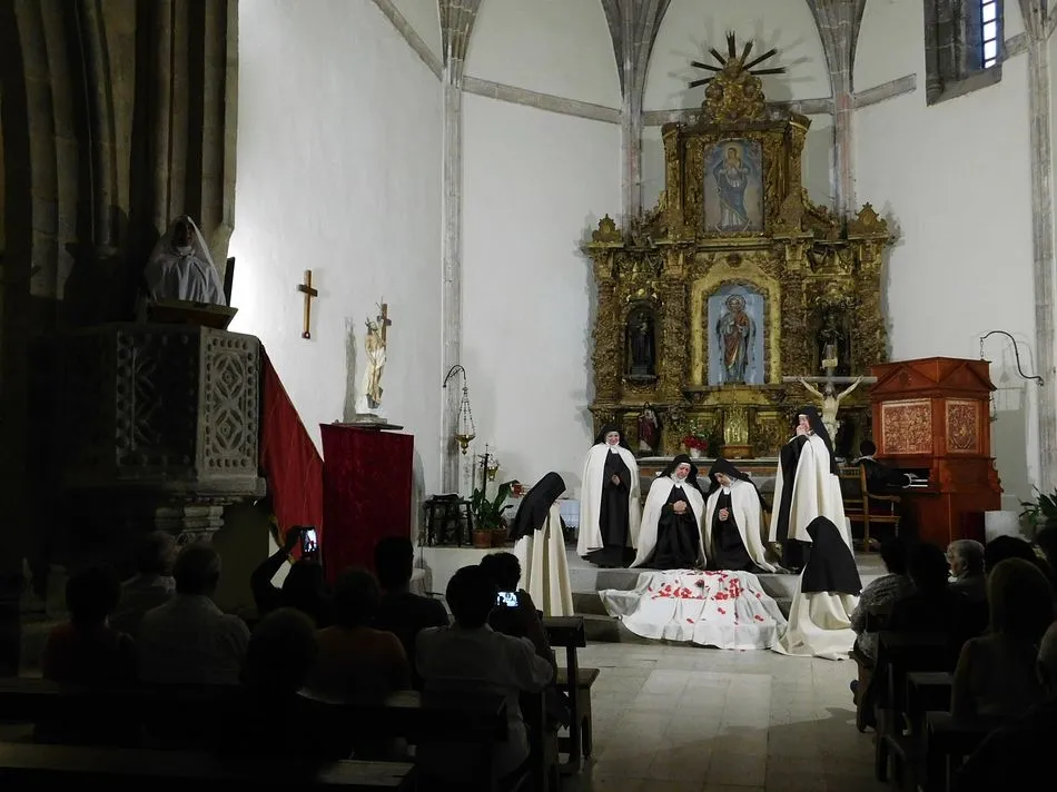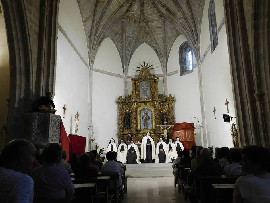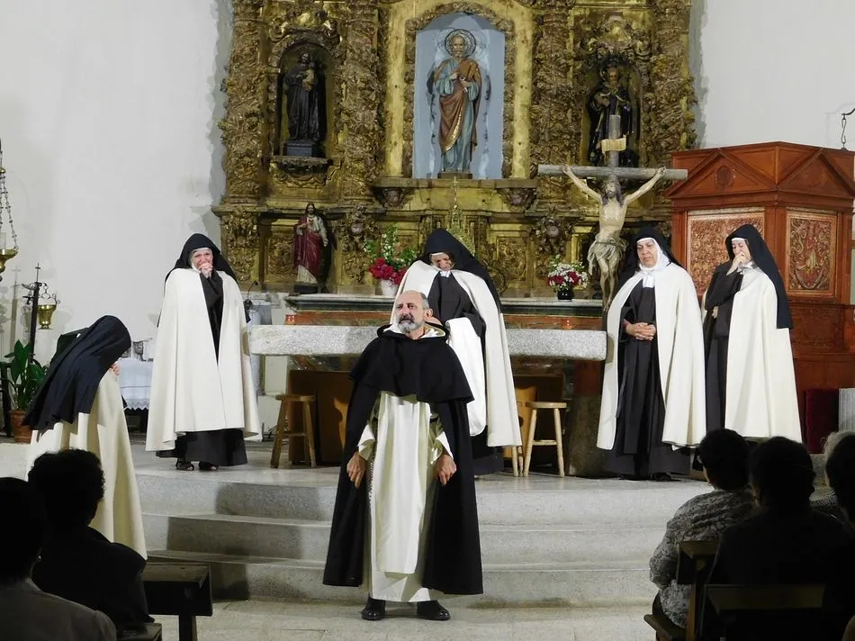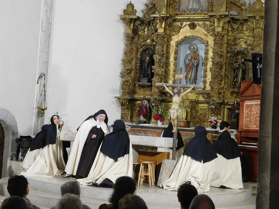El escenario que Endrinal ha ofrecido es el altar de su iglesia parroquial de san Pedro, templo de la época de Teresa, el XVI como deja constancia la fecha inscrita en una de las piedras de sus muros exteriores y que reza 1572, fecha en la que nuestra monja estaba en plena fiebre fundacional, como así lo requería la profunda reforma que llevó a cabo dentro de la Orden carmelita en la que profesó. Muchos caminos pisó dejando huella allí por donde pasaba. Sin calzado apropiado o transporte adecuado, fue capaz de llegar a donde se propuso. Seguramente en este pueblo de Endrinal tan famoso en el siglo pasado por sus buenas facturas de zapatos y su magnífica fabricación de carros, hubieran podido abastecer a la carmelita de lo necesario para su empresa. Incluso los linares que tan productivos fueran en otro tiempo darían material suficiente para elaborar otros hábitos que no fueran los de paño de lana de oveja, tan adusto para las duras jornadas estivales.