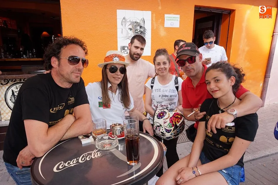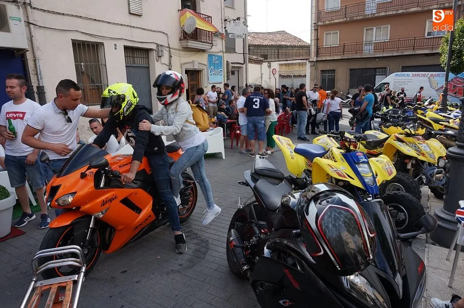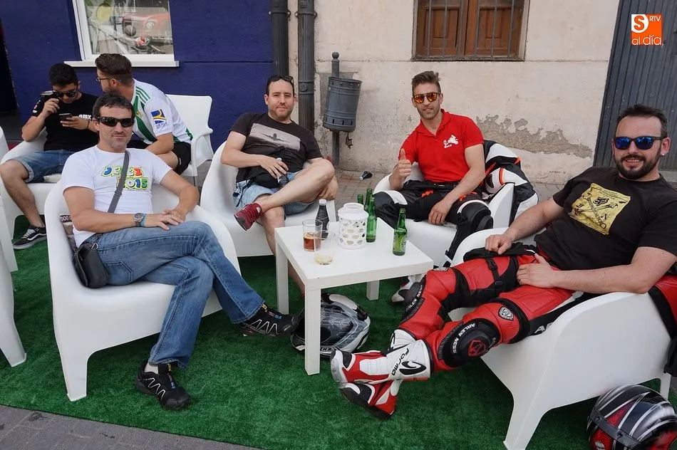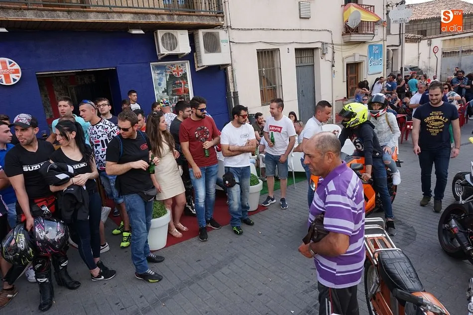 La plaza de Julián Coca es esta tarde el punto de reunión, donde se ofrece la música de Loca FM y un simulador de motocicletas a cargo de Emilio Zamora para todos los participantes. El número de participantes superará los varios cientos, que van llegando a la villa a lo largo de la jornada. Todos ellos se sumarán al medio centenar de socios del motoclub Pata Negra, que organizan el evento con colaboración del Ayuntamiento.
