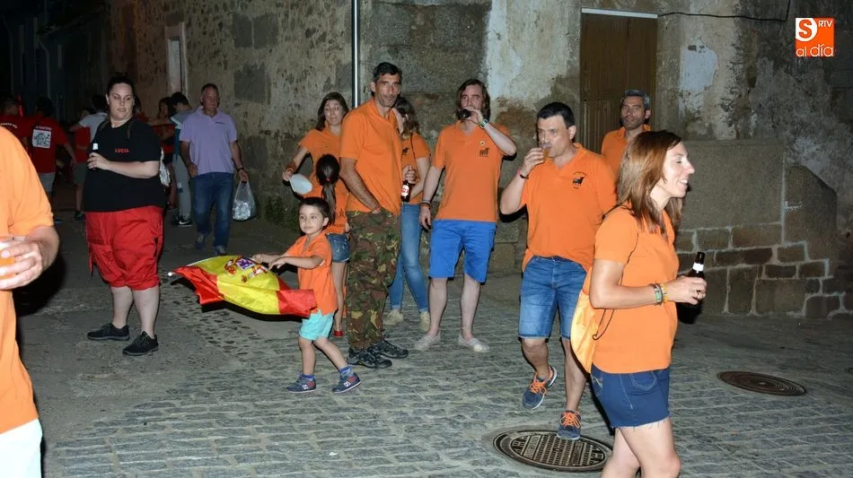 Hinojosa de Duero inició anoche las Fiestas de San Juan Bautista 2018 con la concentración de las peñas en la plaza de la Constitución. Allí, miembros de la Corporación municipal ofrecían sangría a todos hasta la hora del desfile.