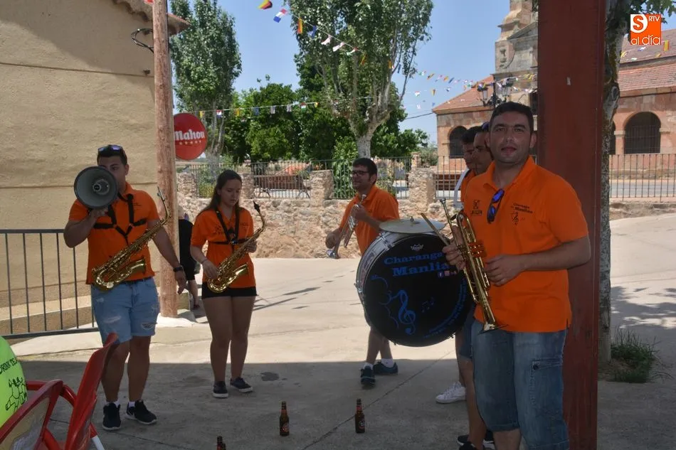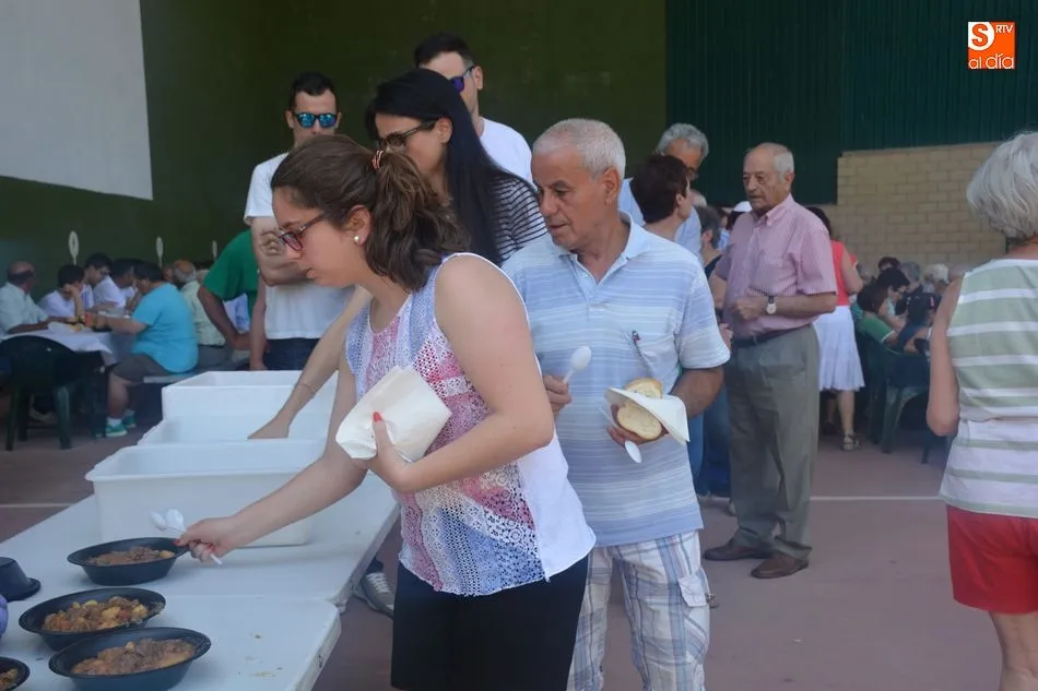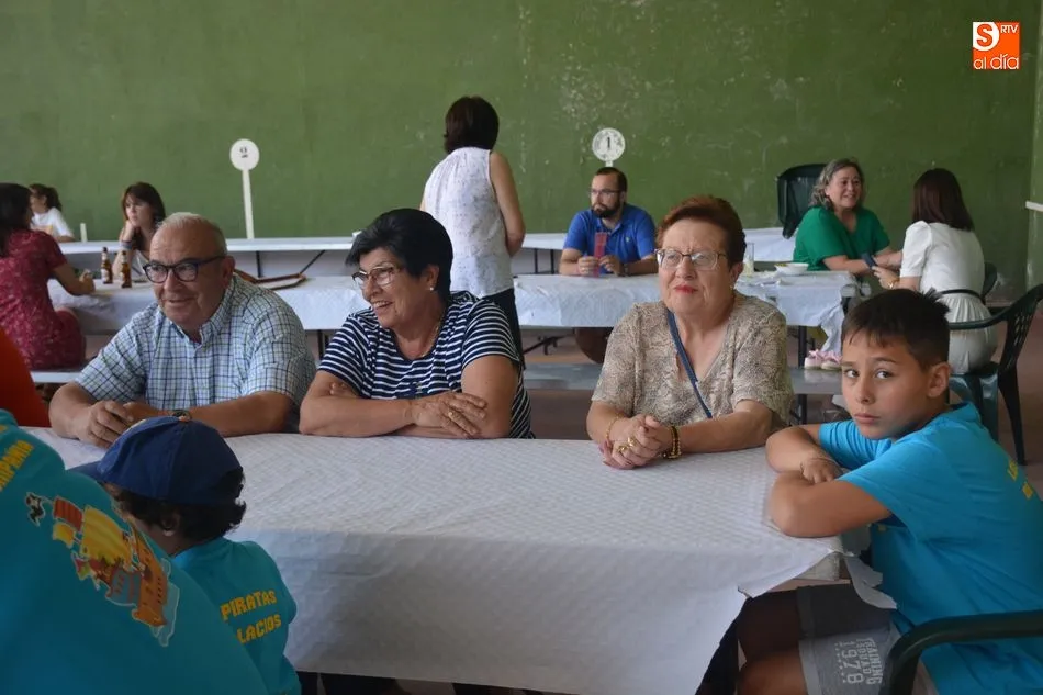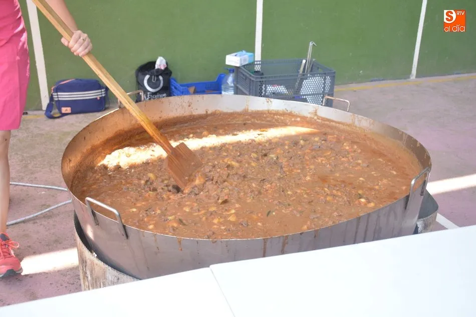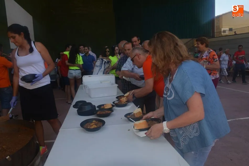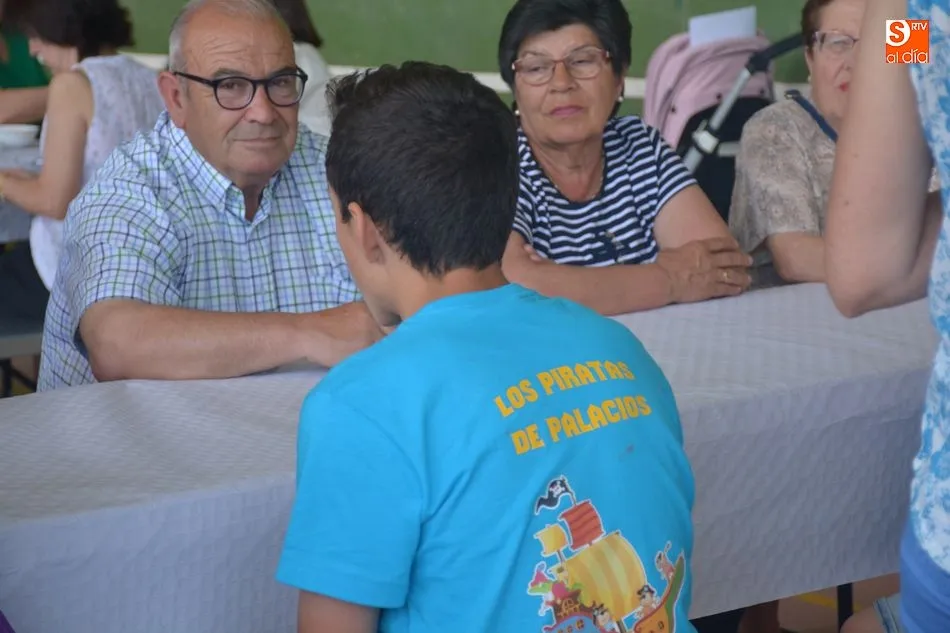 Palacios del Arzobispo celebra este fin de semana sus fiestas grandes en honor a San Juan Bautista. Los vecinos de la localidad han disfrutado esta mañana del baile vermut con la charanga Manliao y, a continuación, se han reunido en el frontón para disfrutar de la comida popular, carne guisada.