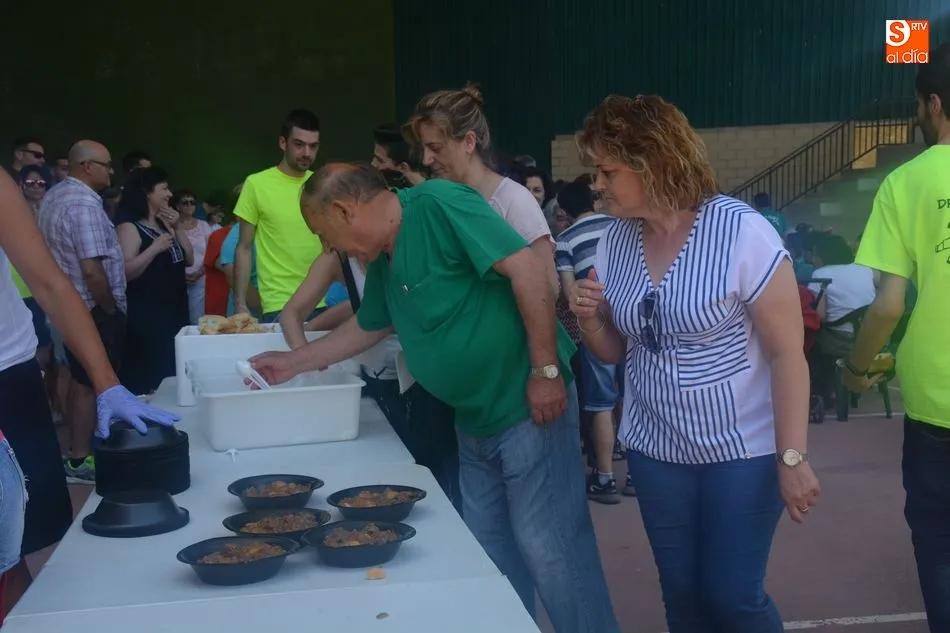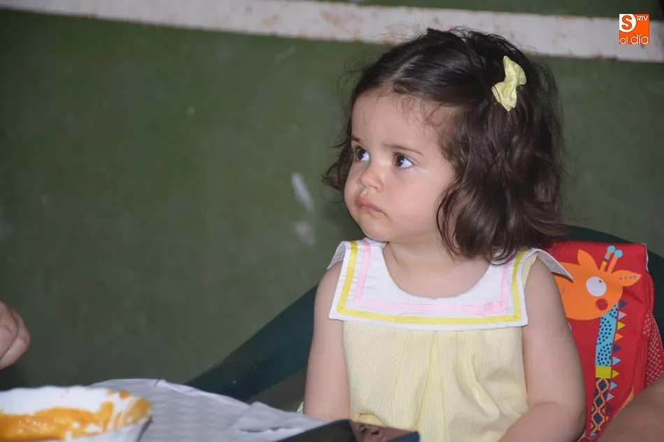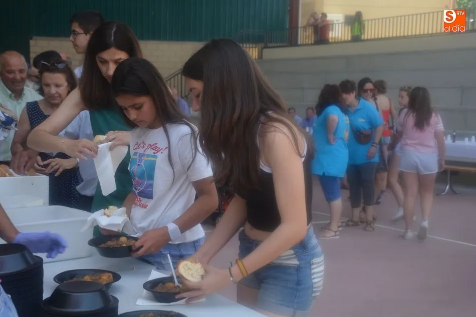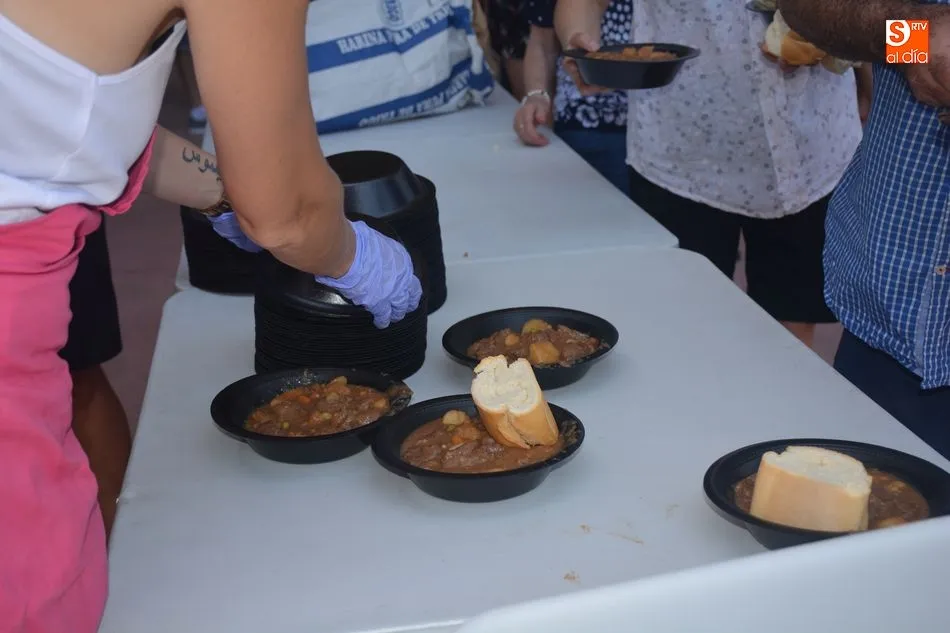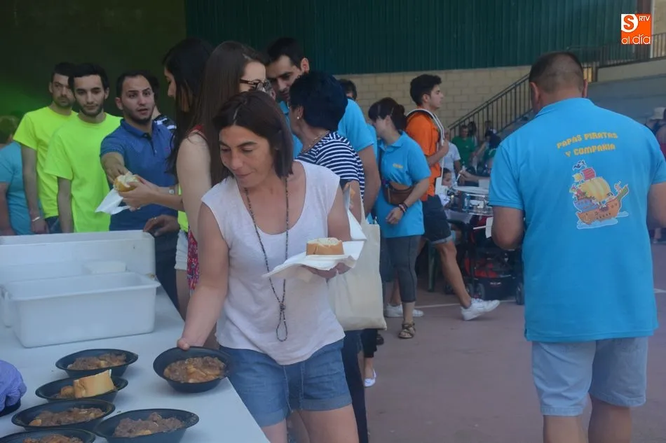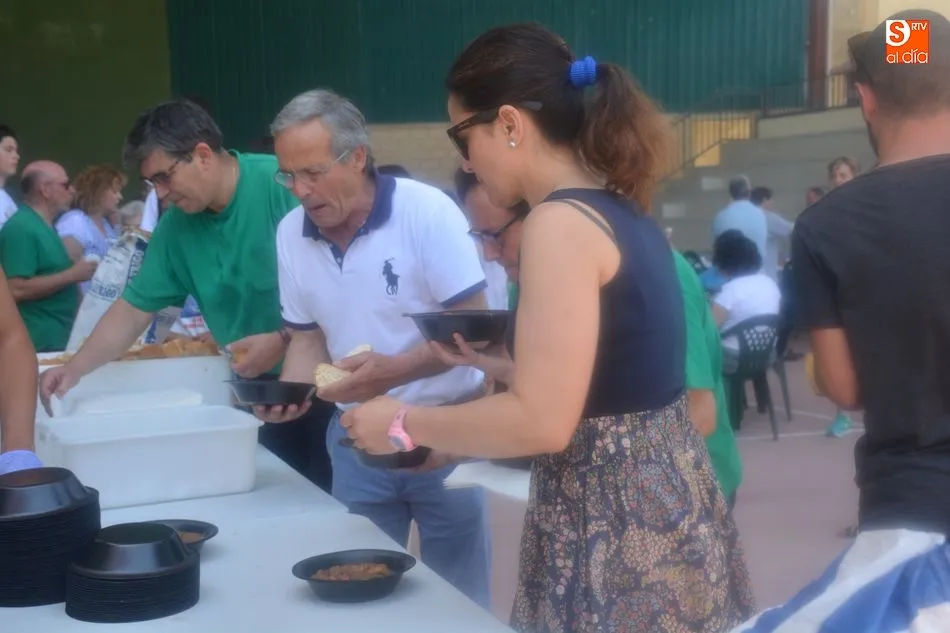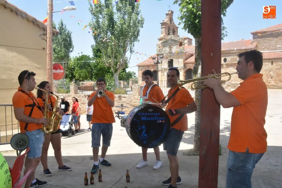Palacios del Arzobispo celebra este fin de semana sus fiestas grandes en honor a San Juan Bautista. Los vecinos de la localidad han disfrutado esta mañana del baile vermut con la charanga Manliao y, a continuación, se han reunido en el frontón para disfrutar de la comida popular, carne guisada.