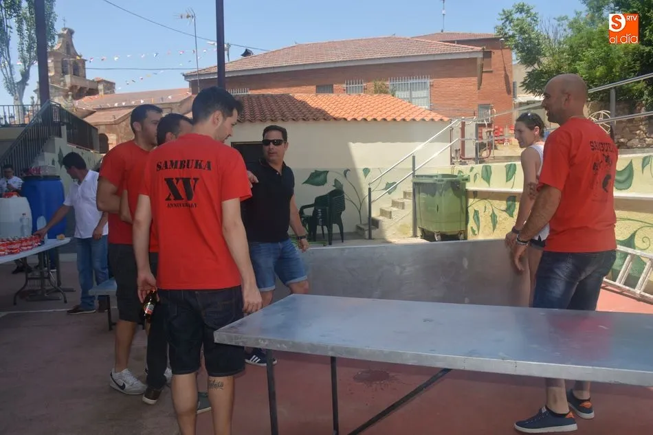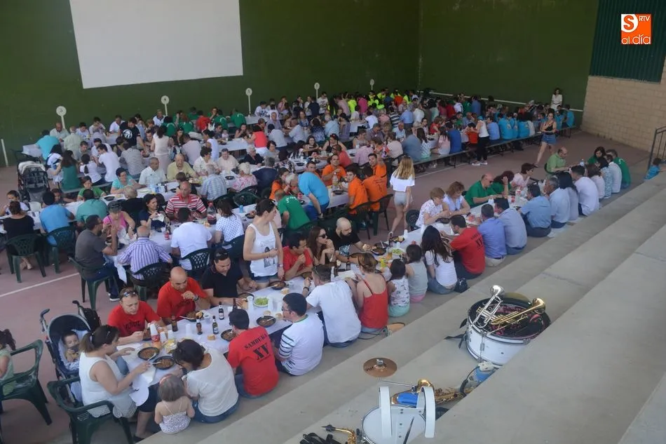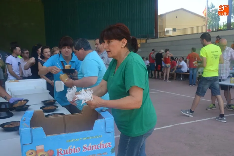 Los vecinos de la localidad se han divertido con la charanga y han disfrutado de la comidad popular en el frontón