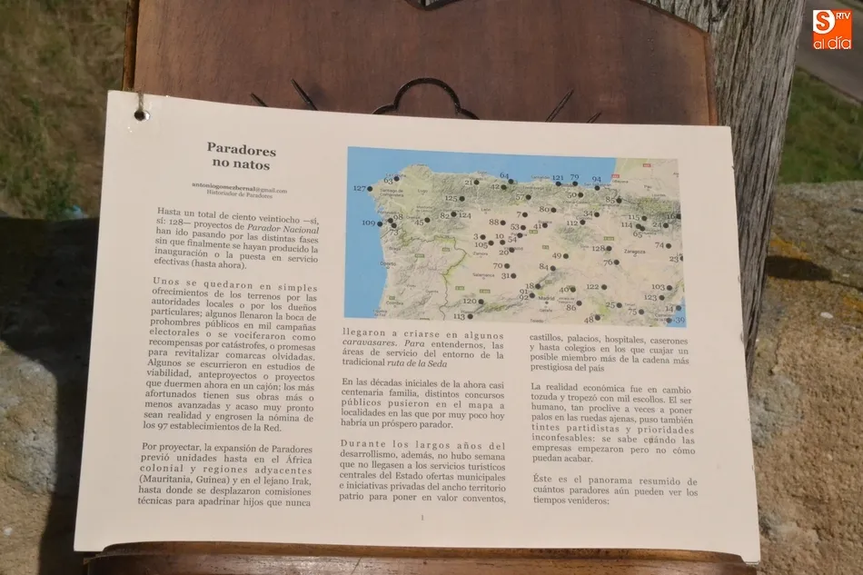 Además, se pudieron contemplar varias acciones especiales que se habían preparado en el jardín. Por un lado, una serie de folletos con curiosidades en torno a la Red de Paradores (por ejemplo, los proyectos de Paradores que nunca llegaron a ver la luz). Por otro lado, una colección de llaves de habitaciones del edificio. Y por último, una serie de baldosines en los que se había escrito la fecha de apertura de cada uno de los Paradores de la Red.