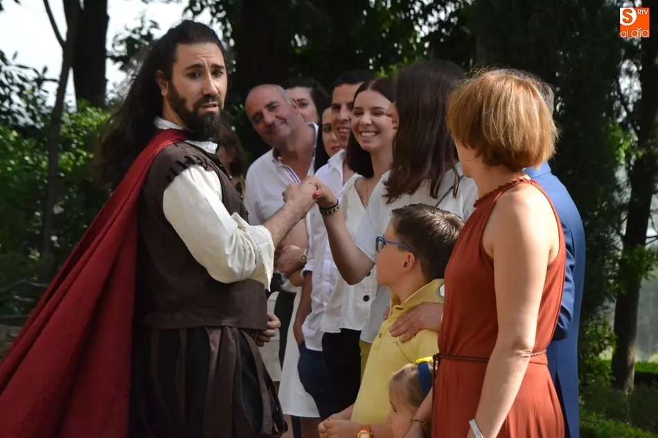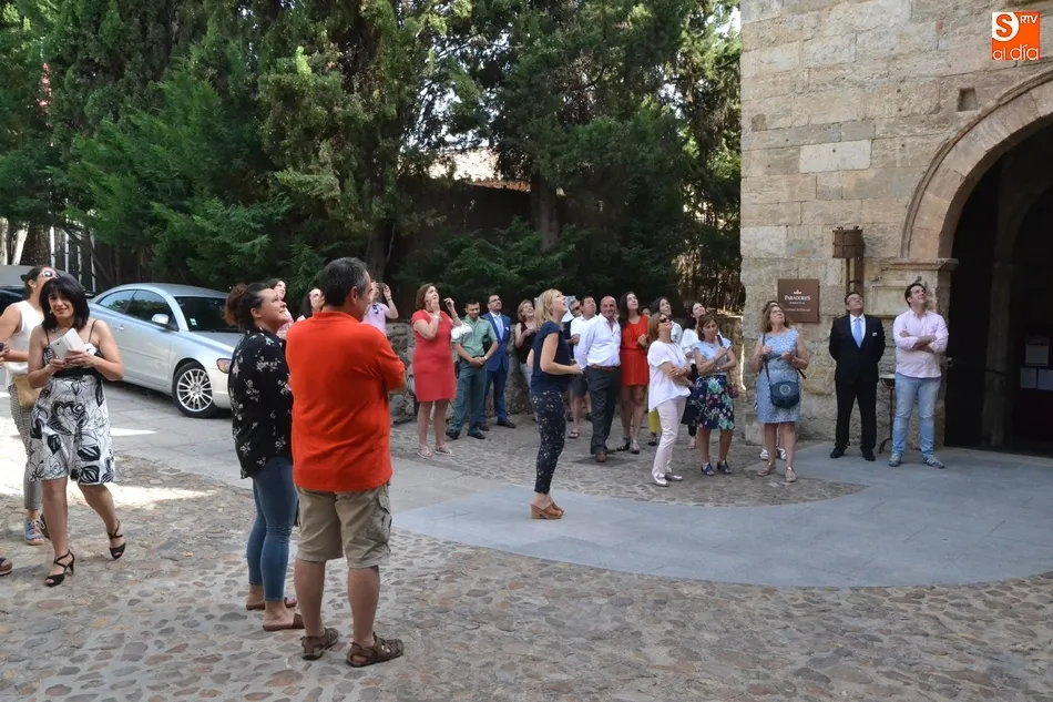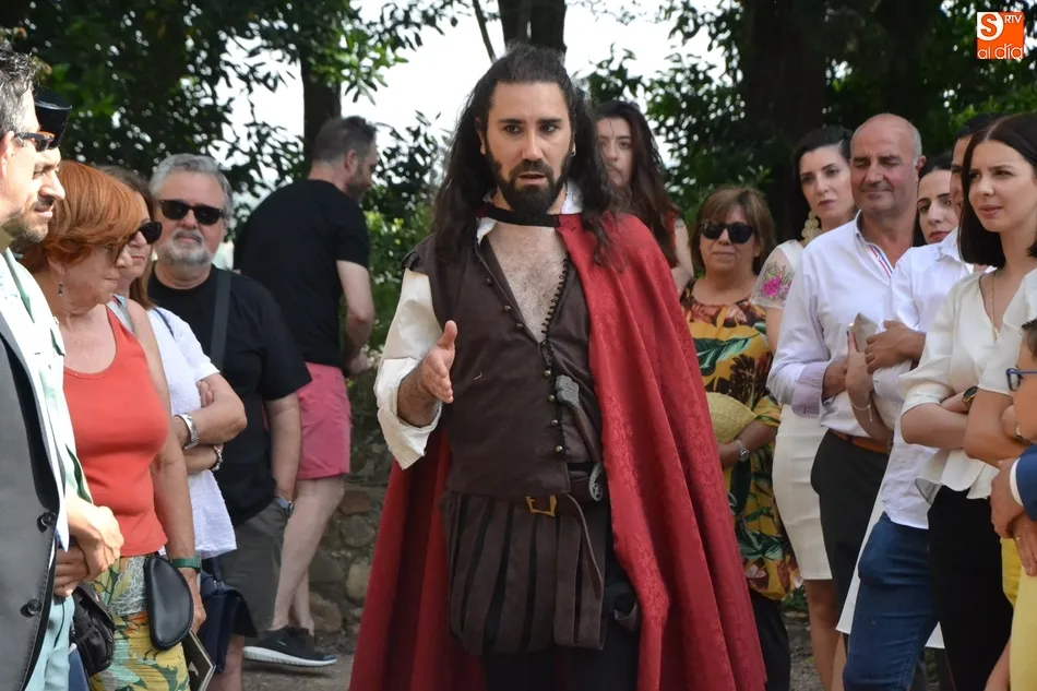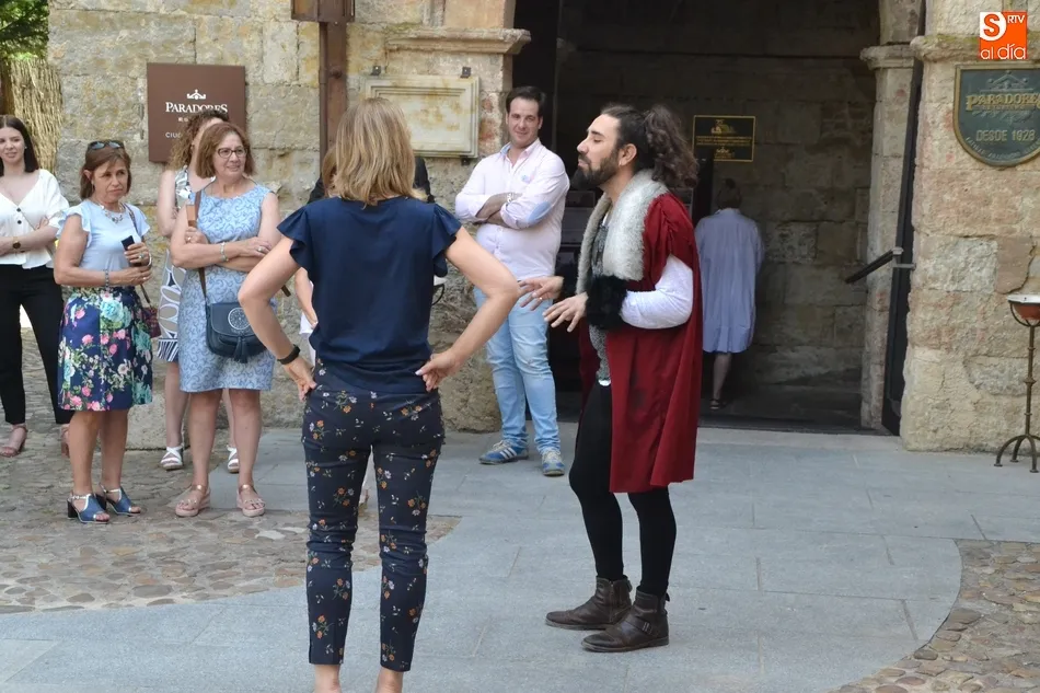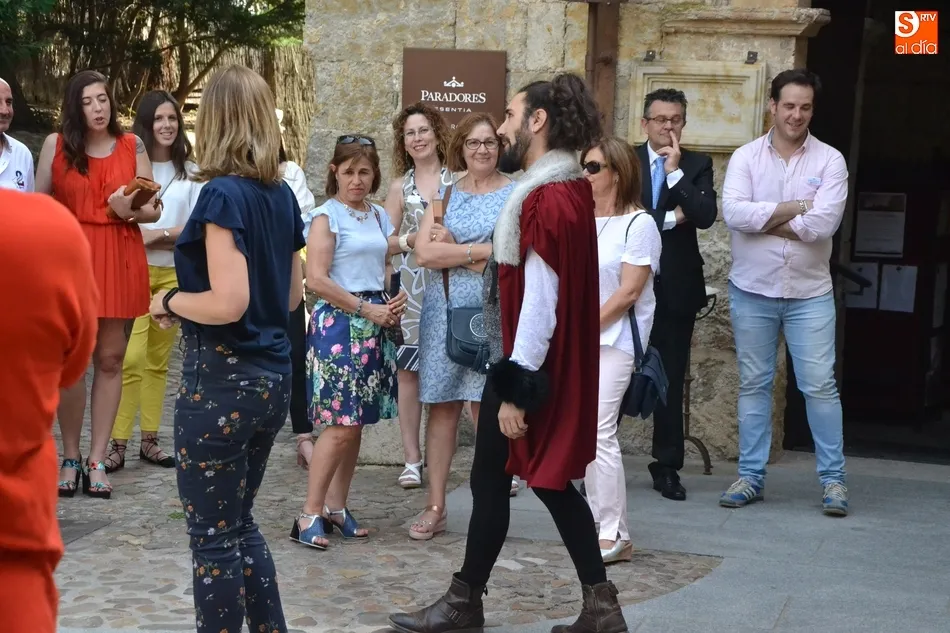 El Parador estrena visitas teatralizadas en la jornada de puertas abiertas por su 90º Aniversario   | Imagen 1Durante la tarde, el Parador estrenó visitas teatralizadas, bajo la dirección de Beatriz Jorge Carpio, que fue guiando un recorrido por diversos lugares de la instalación en los que apareció en varios momentos el actor Sergio Cardoso metido en la piel de tres personajes: Enrique II de Trastámara, Antonio del Águila y Abraham, un cantero del Parador.