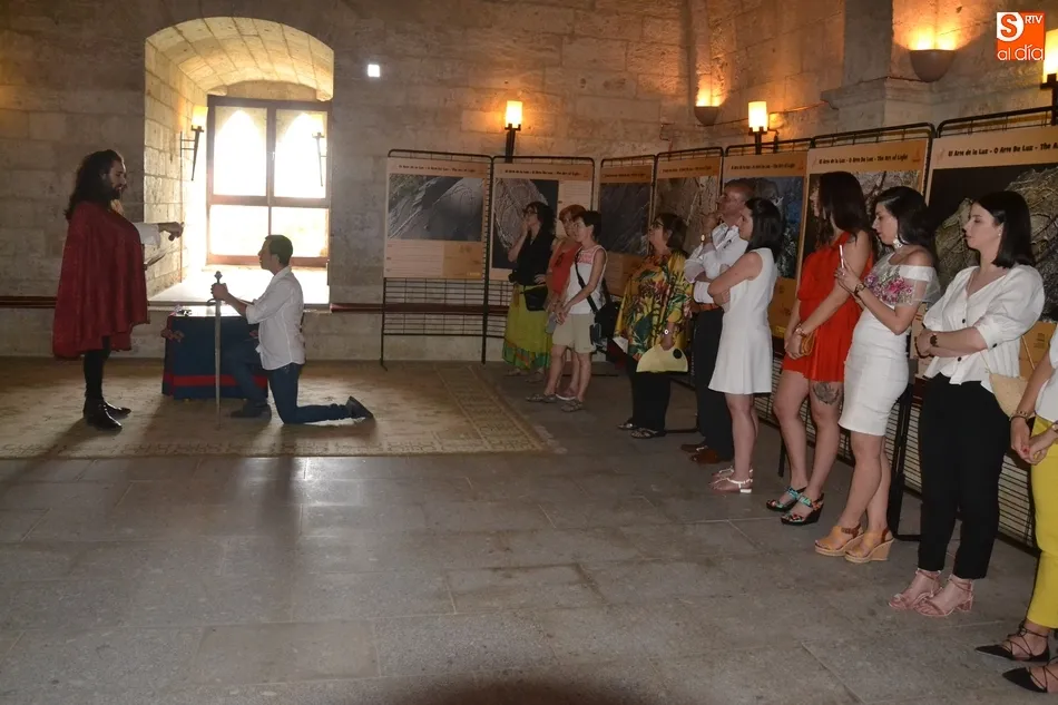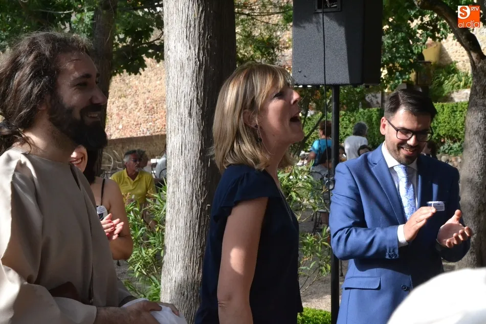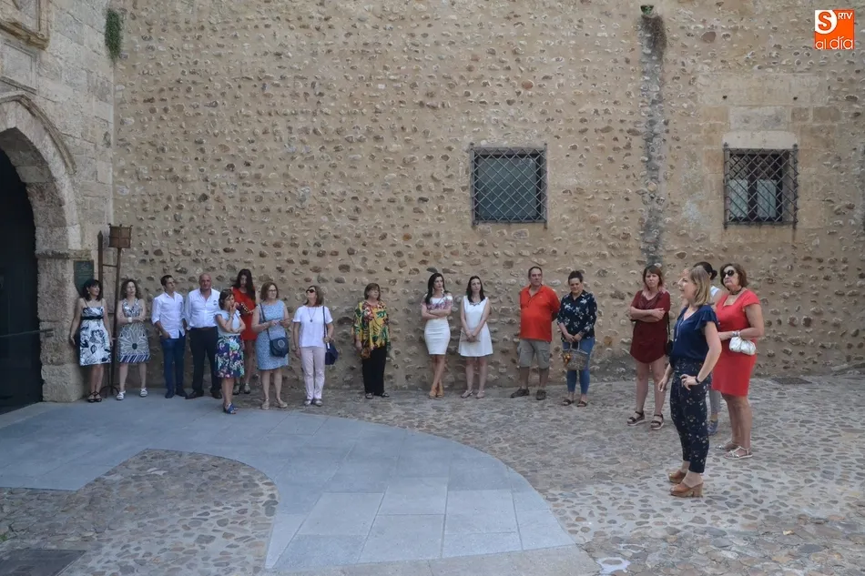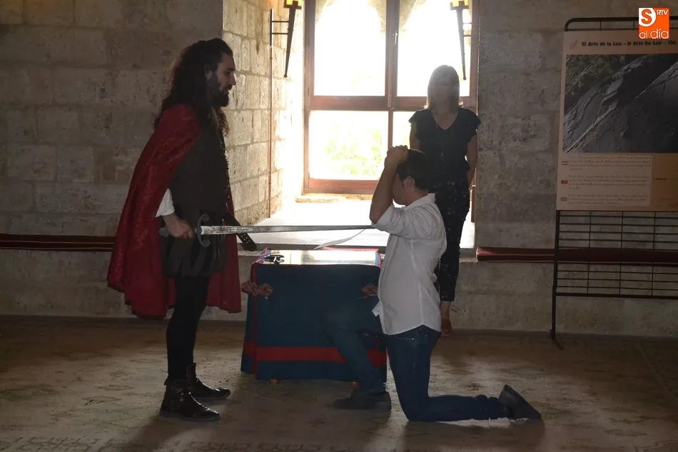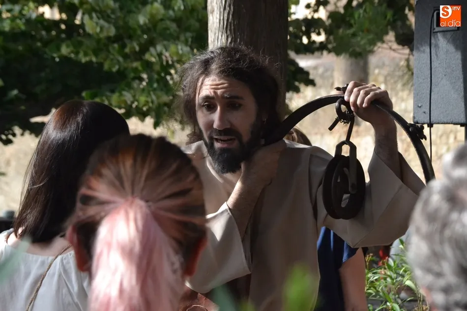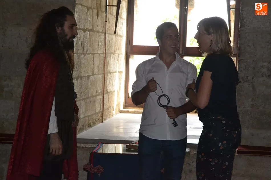 El Parador estrena visitas teatralizadas en la jornada de puertas abiertas por su 90º Aniversario   | Imagen 1Durante la tarde, el Parador estrenó visitas teatralizadas, bajo la dirección de Beatriz Jorge Carpio, que fue guiando un recorrido por diversos lugares de la instalación en los que apareció en varios momentos el actor Sergio Cardoso metido en la piel de tres personajes: Enrique II de Trastámara, Antonio del Águila y Abraham, un cantero del Parador.