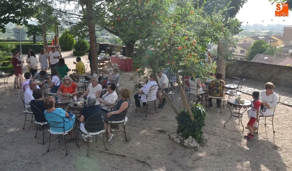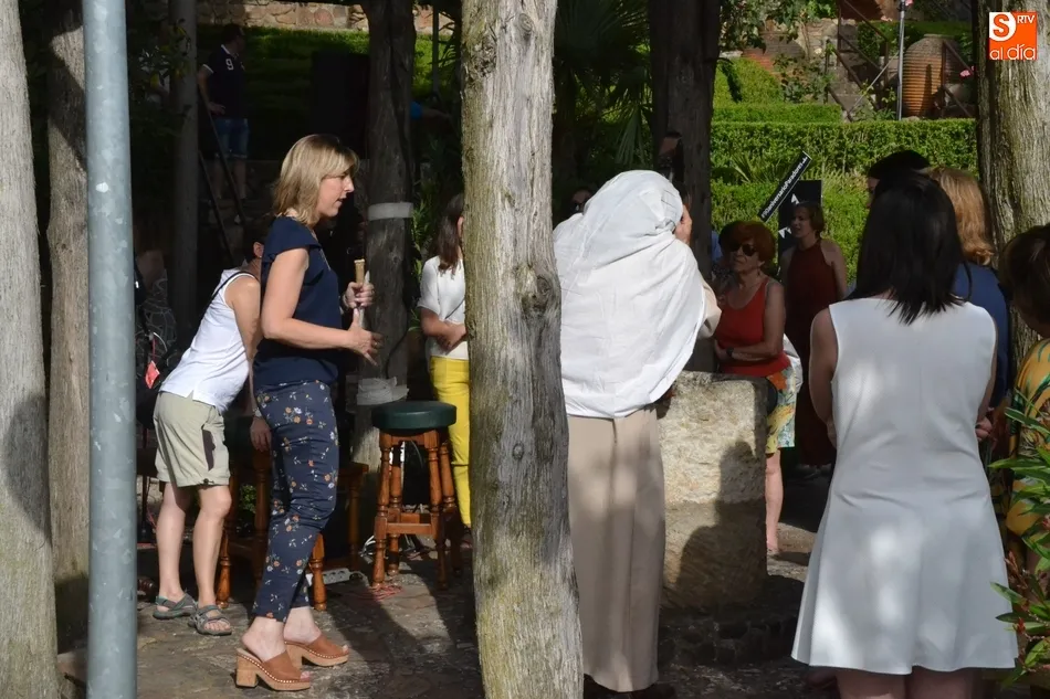 La visita teatralizada duró en torno a 1 hora, concluyendo en el pozo del jardín. A continuación, los asistentes a esa visita ?la mayoría de ellos invitados- pudieron probar una copa de cava (de colores). En ese jardín había unas cuantas personas más sentadas en las mesas y sillas por allí repartidas, desde donde pudieron disfrutar de dos espectáculos en lo que quedaba de tarde: una exhibición de baile a cargo del Centro de Pilates y Relajación Tere, y un concierto de blues.