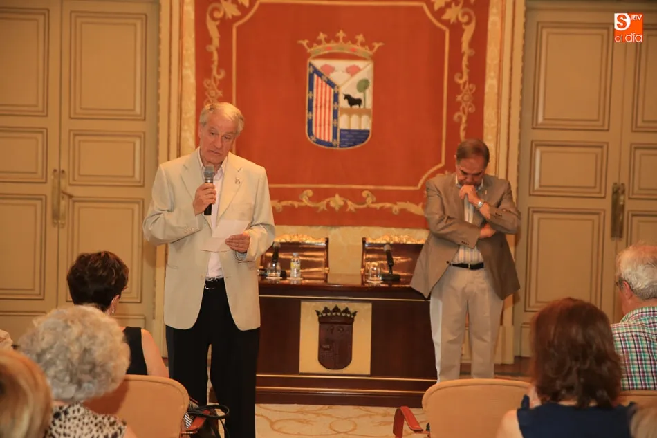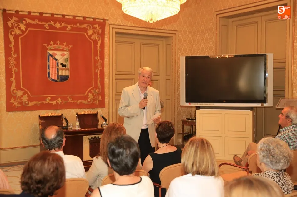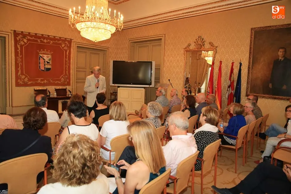 El Salón de Recepciones del Ayuntamiento de Salamanca ha actuado hoy como escenario de la jornada final del curso del Centro de Estudios Salmantinos. Ángel Corrochano Sánchez, junto con el presidente de CES Jesús Málaga, han llevado a cabo un coloquio al que han denominado 'Un Patrimonio olvidado sobre el control del tiempo. Los relojes de sol en Salamanca'.